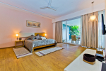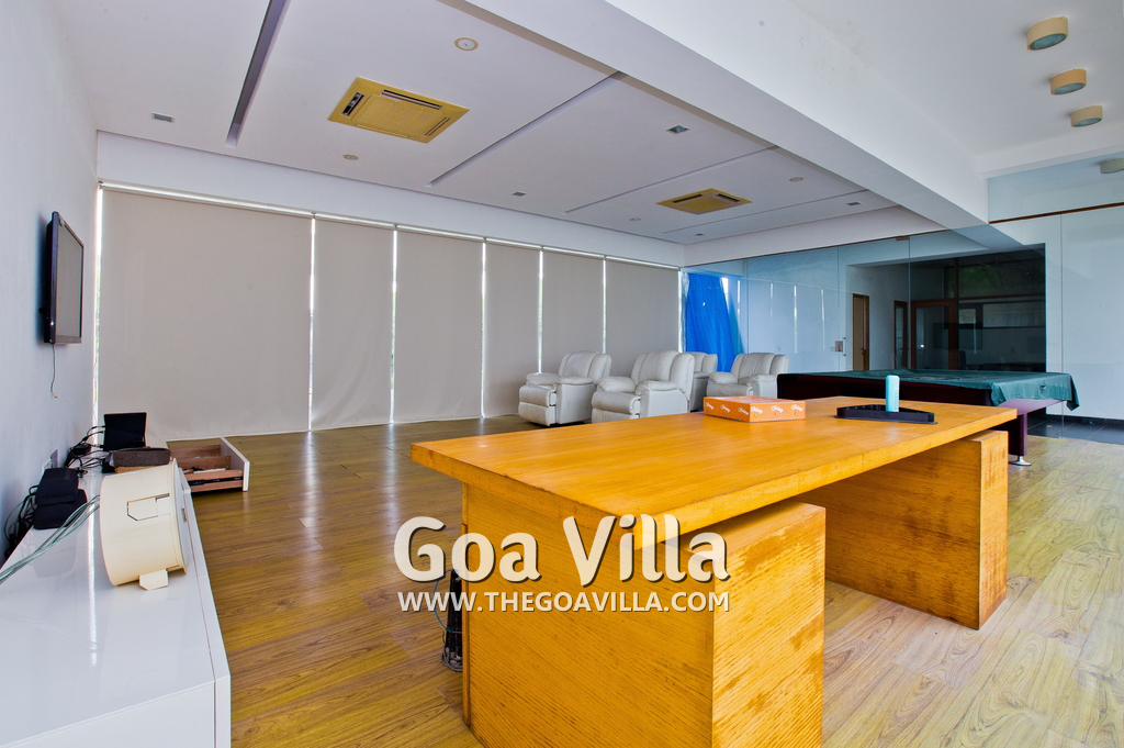 This luxury residence is located 10 minutes from Goa Airport and close to the Bogmalo Beach, providing unparalleled comfort while simultaneously exuding elegance and tranquility. The villa includes stylish furniture, further complemented with a fully equipped kitchen including a hob, chimney, fridge, microwave, washing machine, and cutlery. In addition, beautiful arts and artifacts providing further luxury are sprinkled all over the property. To enable relaxation during your stay, entertainment is not skimped on as the villa is also equipped with a Bose music system.