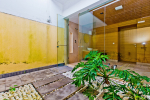 - Entrance door: wooden frame with decorative wood/ metal shutters