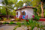 Territory — shady garden, spread out in the 1500 meters, which is in the morning visiting a variety of birds — green parrots, a famous goan bird Kingfisher, as well as the family of squirrels.
