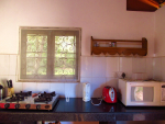 - The kitchen has a refrigerator, gas stove, microwave, toaster and a set of necessary utensils.