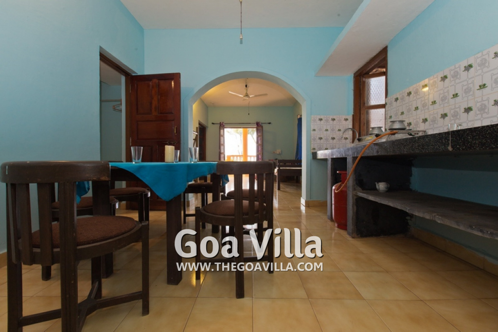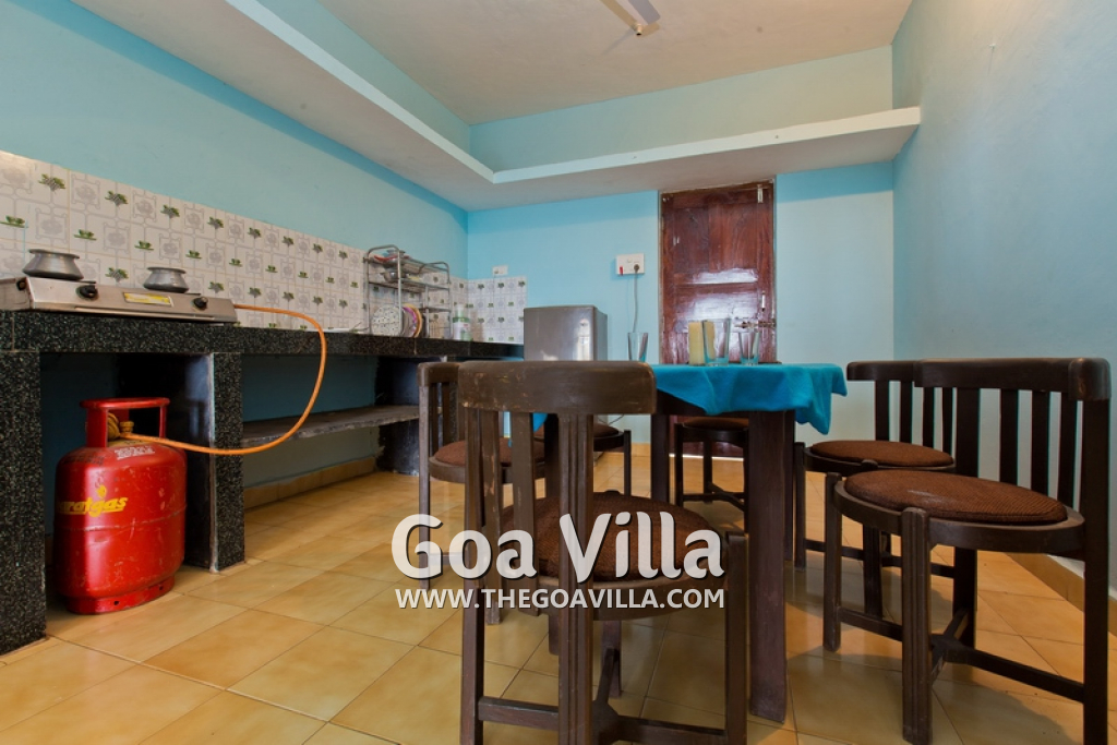 - Adjacent the living room is the dining that seats four and the kitchenette which is equipped with Refrigirator, Gas stove, Frying pan, Kettle, Juicer, Toaster, Crockery, Cutlery, Glasses and Cooking Utensils.