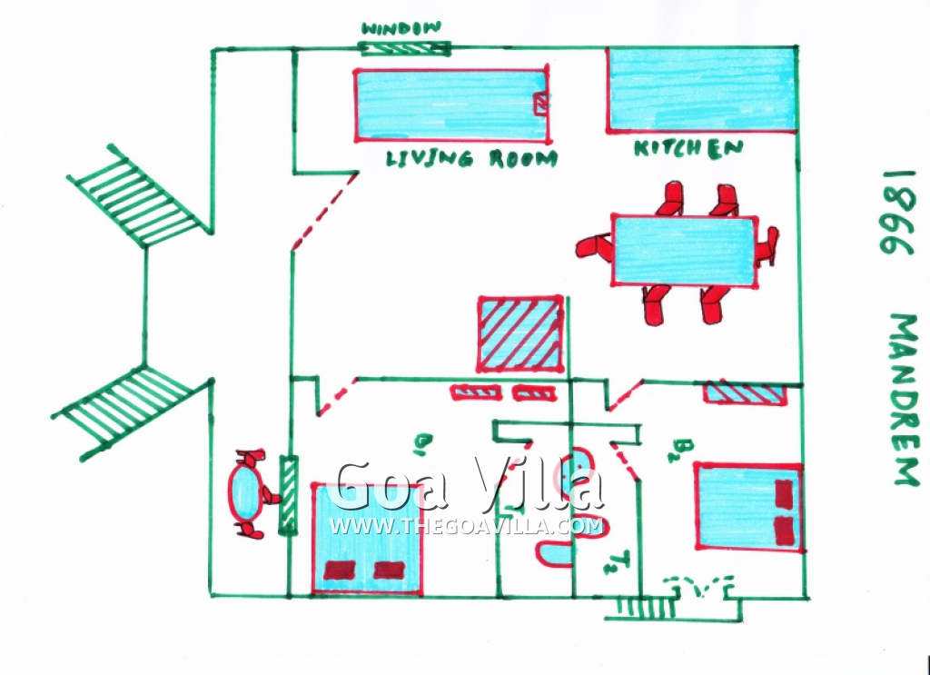 - The Villa comprises of 2 BHK that can accomadate 4 people and has a spacious porch with a coffee table and chairs from where you get a beautiful view of sunset.