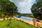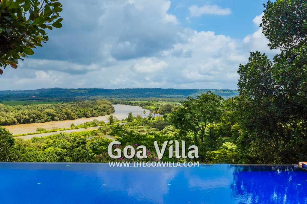 A modern villa on a hilltop in North Goa with traditional interiors. The villa has 3 luxury bedrooms, all en-suite and air-conditioned. Beautiful outdoor garden. Huge terrace and infinity swimming pool offering river and nature views. Comfortable living room, kitchen, and dining area.