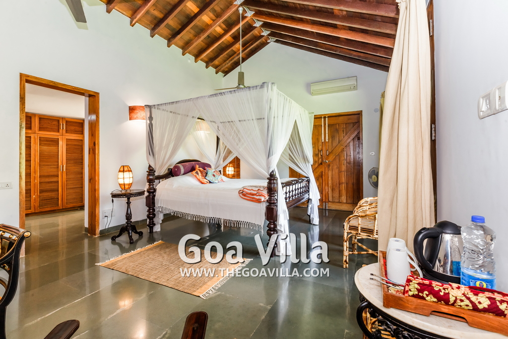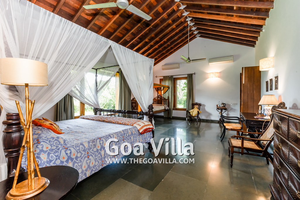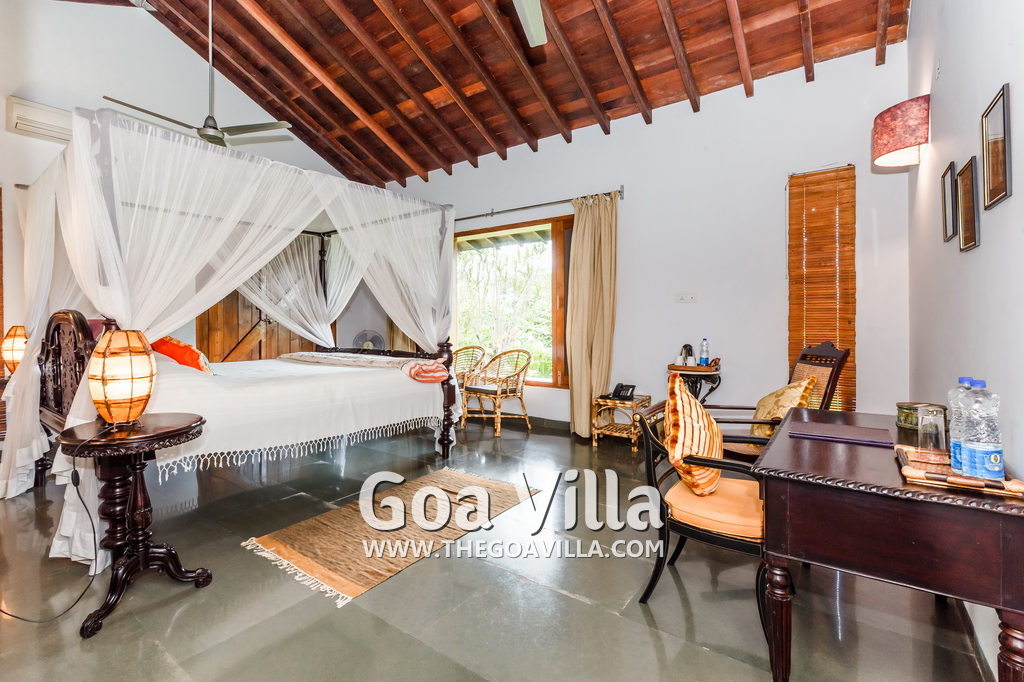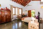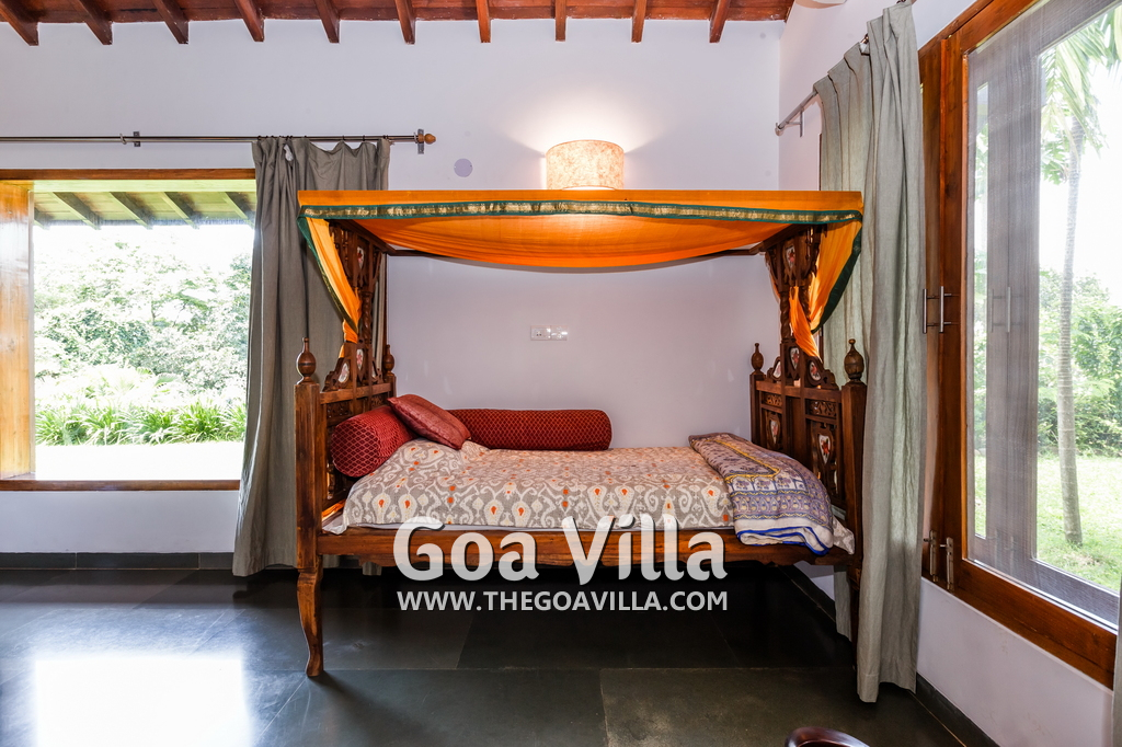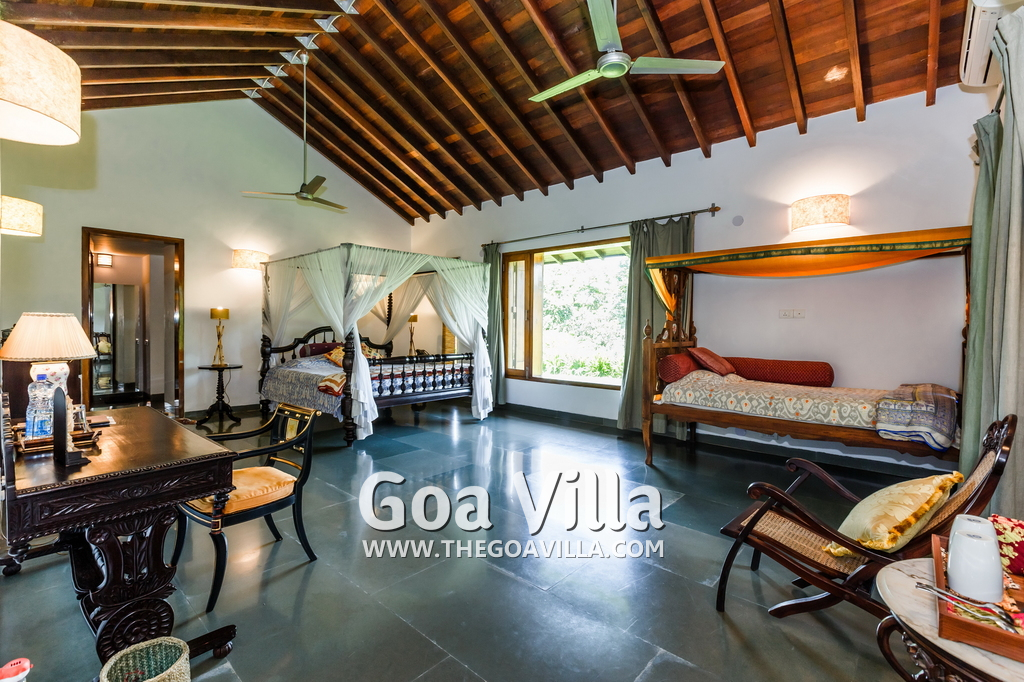 Aldona is a non-touristy area, a village neighborhood with many trees. But it is close to the popular beaches of Baga and Anjuna. The villa’s settings, decorations, and the surrounding area all promote peaceful living within nature. It is a great choice for guests who prefer luxury and privacy in a serene and green location. This house is popular with film stars and celebrities visiting Goa. The 3 houses together are also given away on rent for weddings.