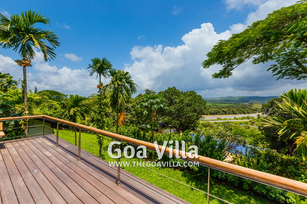 Jungle Villa 3 is located at Aldona in North Goa. It is on a hilltop offering fabulous views of the Mapusa River. At a little distance where Mapusa meets the Assanora River, there is a small mangrove forest, a favorite spot of many birds. Aldona is a rural neighborhood with villages, tall trees, and a few churches. This is a non-touristy area, which keeps it clean, quiet, and green. Very peaceful neighborhood.