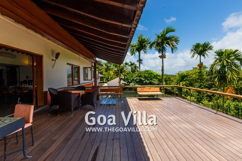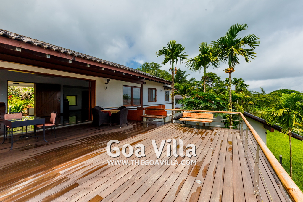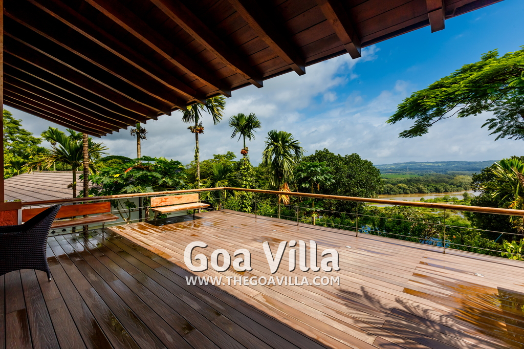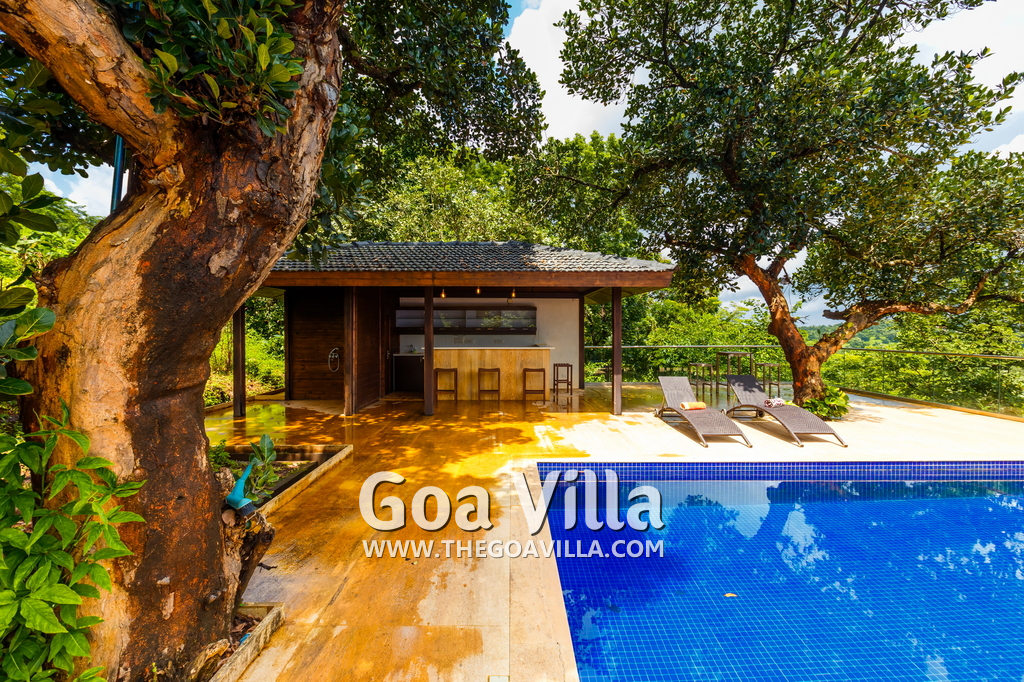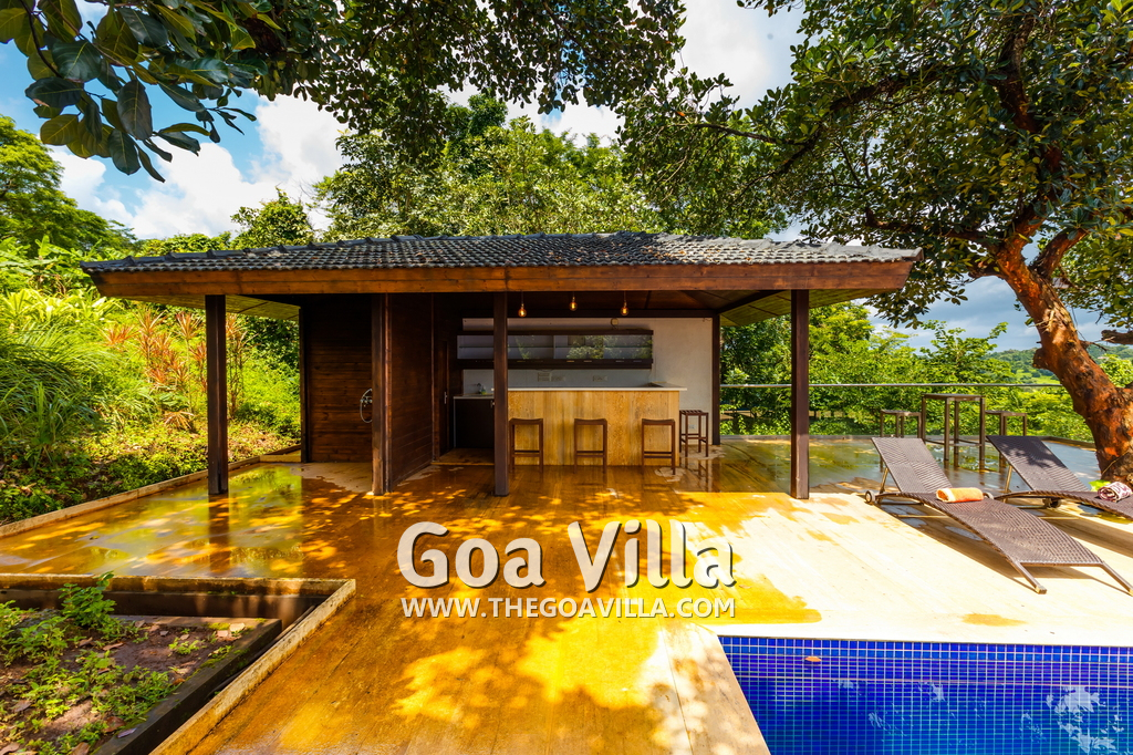 Swimming Pool – This is certainly one of the key highlights of Jungle Villa 3. It has an infinity pool at the edge with a Jacuzzi beside it. There are sun beds beside the pool where guests can sit down and relax. There is also a poolside bar serving drinks and some light snacks. From this area, you will get fantastic views of the Mapusa River and the forest areas. There is nothing between the house and the river except open land. So you will get unobstructed views.