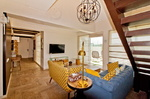 - The living room has comfortable upholstered furniture, a TV, a dining table with chairs. From the living room there is an exit to a spacious terrace with which leads you to amazing private terrace pool. This place offers a breathtaking view of the green meadows and amazing sunsets.