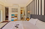 - The apartment consists of three bedrooms, each with its own bathroom. Bedrooms are equipped with air conditioning, spacious beds, bedside furniture. Two bedrooms have an exit to the balcony with a stunning view of the beauty of nature.