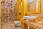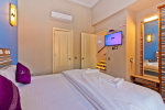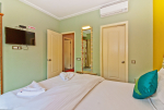 - The apartment consists of two spacious bedrooms with attached bathrooms. Bedrooms are equipped with air conditioners, cupboards, TV and comfortable beds. Each bedroom has a balcony.