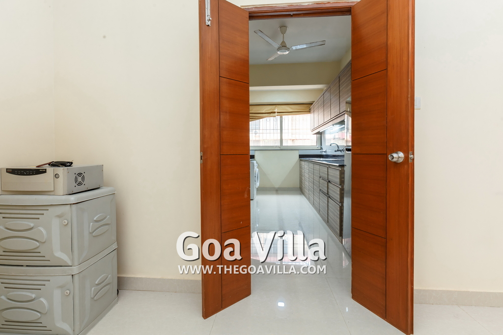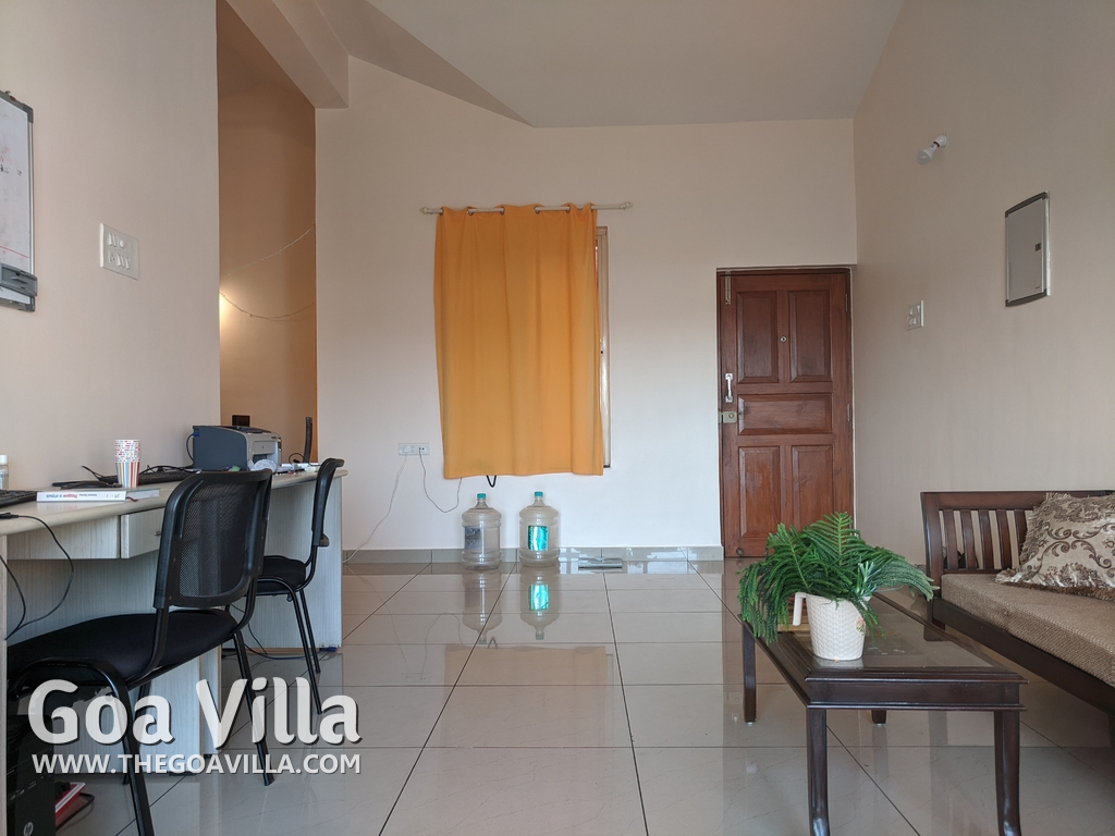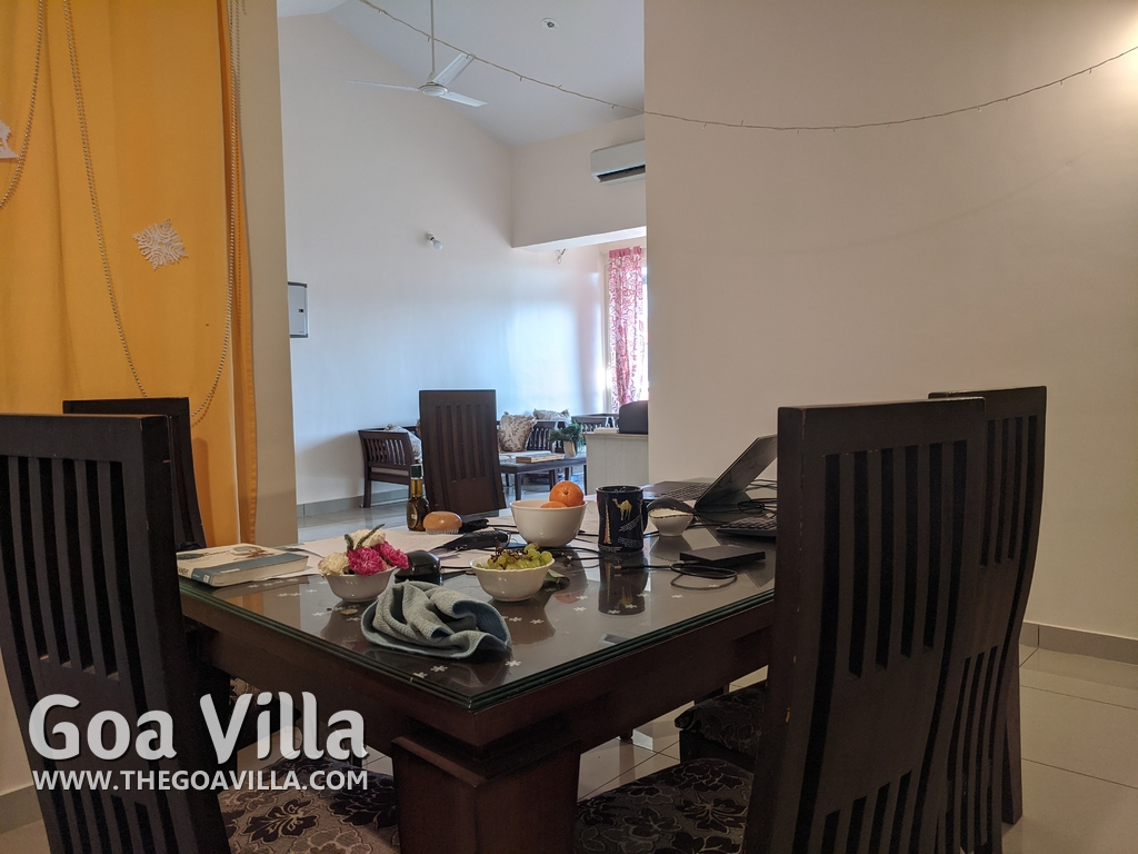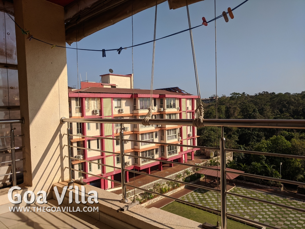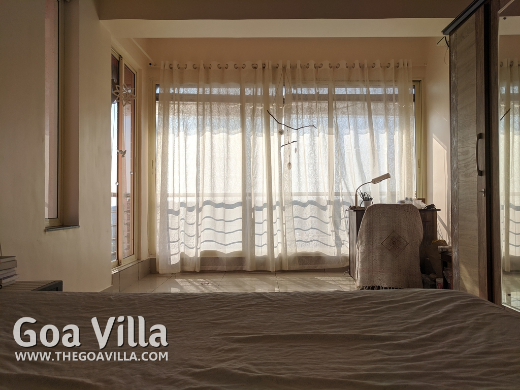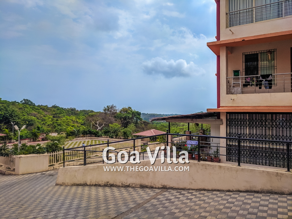 You will find many restaurants, cake shops, and even a fish market nearby. There are banks, ATMs, schools, and other utilities. The Mandovi Hospital and an ayurvedic clinic are located within walking distance from the apartment in North Goa. This is a green and quiet residential area with many trees.