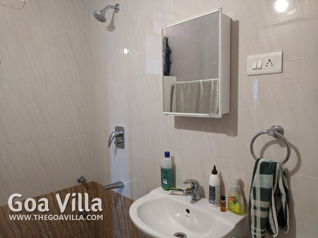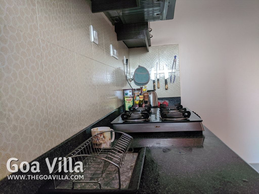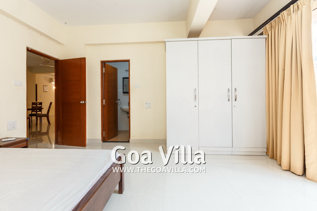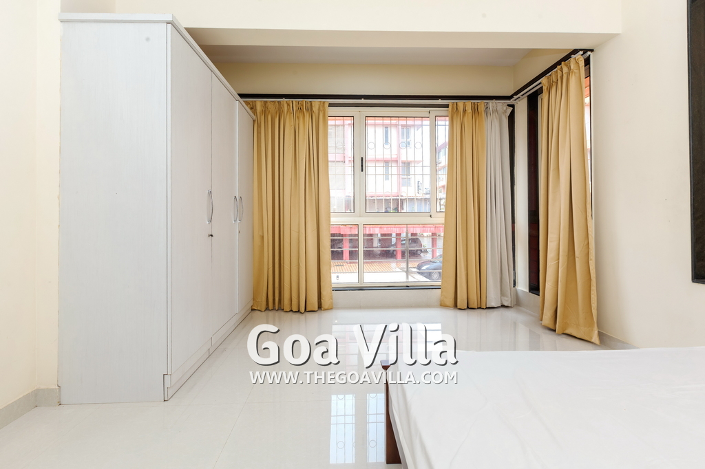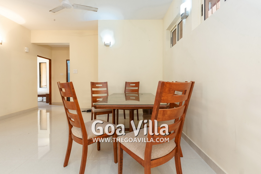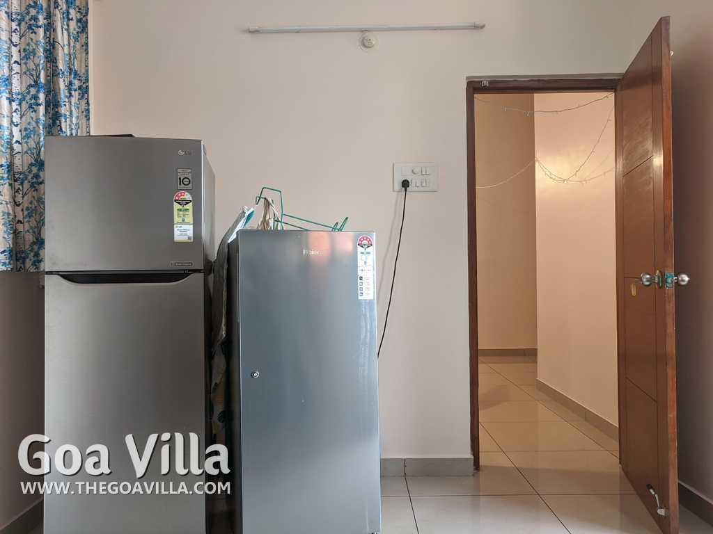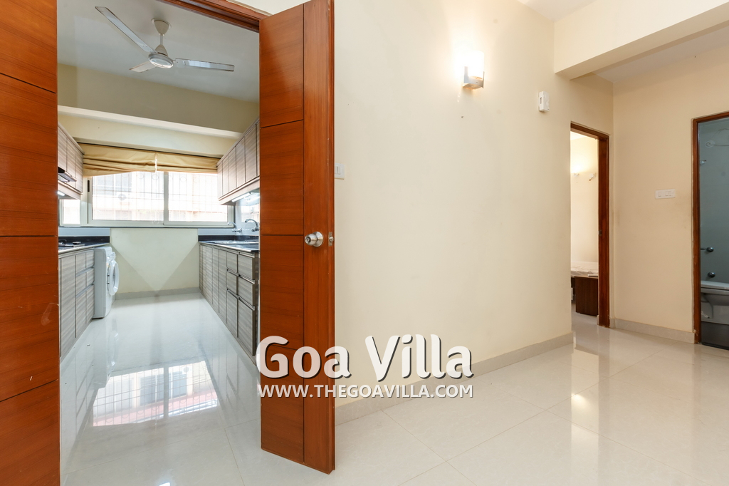 You will find many restaurants, cake shops, and even a fish market nearby. There are banks, ATMs, schools, and other utilities. The Mandovi Hospital and an ayurvedic clinic are located within walking distance from the apartment in North Goa. This is a green and quiet residential area with many trees.