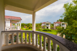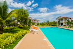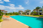 Swimming Pool – There is a large swimming pool with a cascading waterfall at one end. The pool is shared by residents of all the villas, apartments, and suites. There are sun beds and benches all around the pool where the guests can relax after a swim. Surrounding the swimming pool is a beautiful landscaped garden with plenty of trees. The river is just behind this garden and a row of houses.