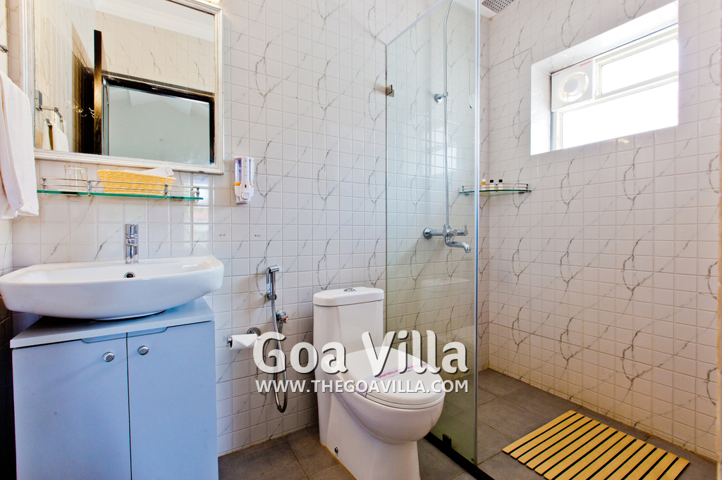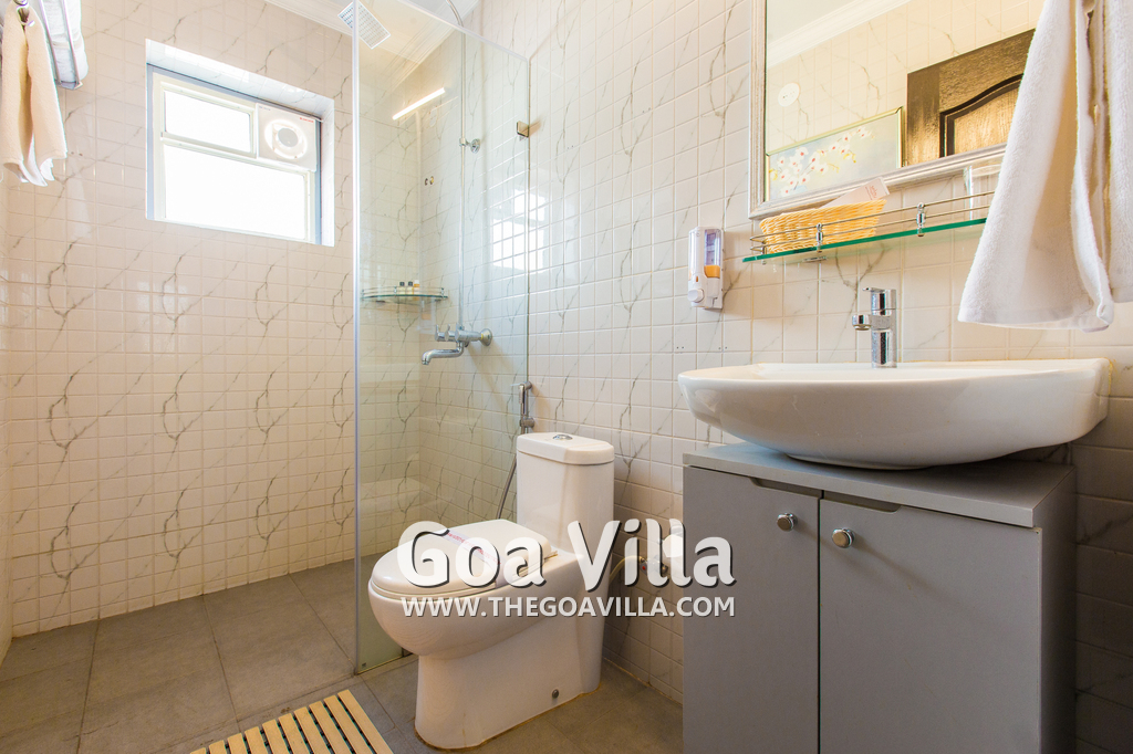 Bathrooms – 1st floor bathrooms are attached with the 2 bedrooms. There is a third common bathroom in the ground floor. Modern baths with a large sink, mirror, wardrobe, and a shower cubicle with hand shower.
