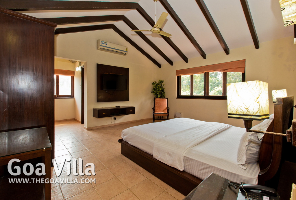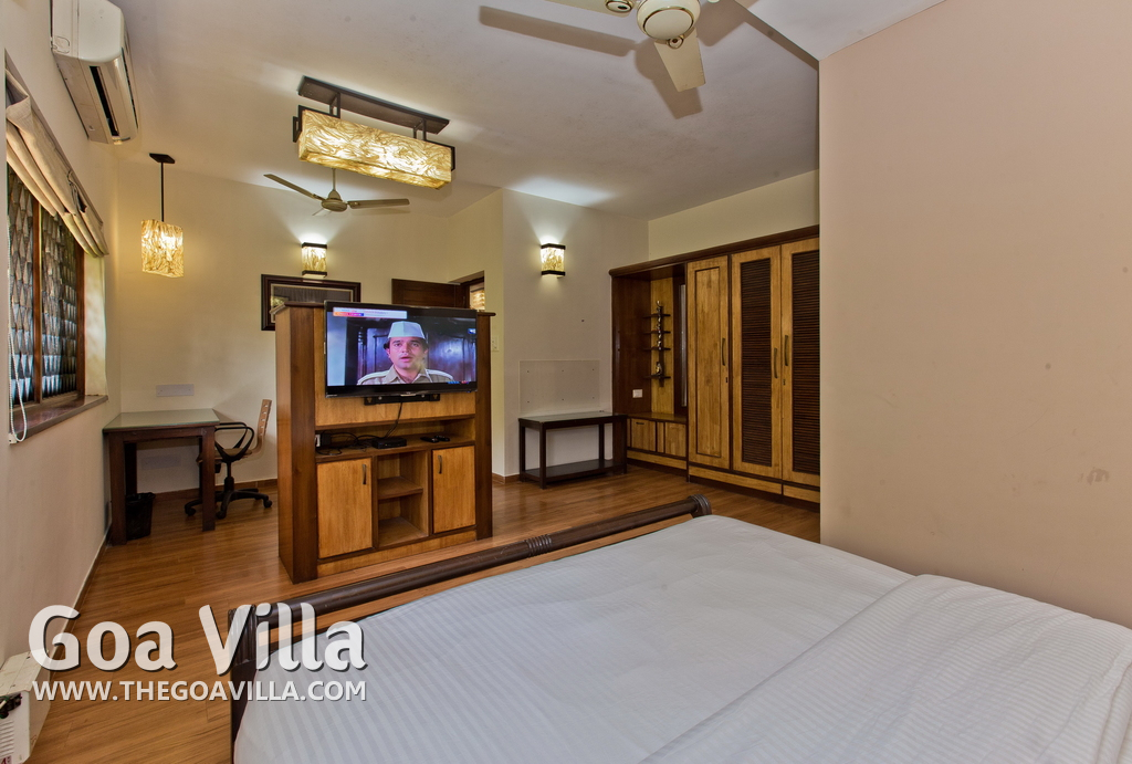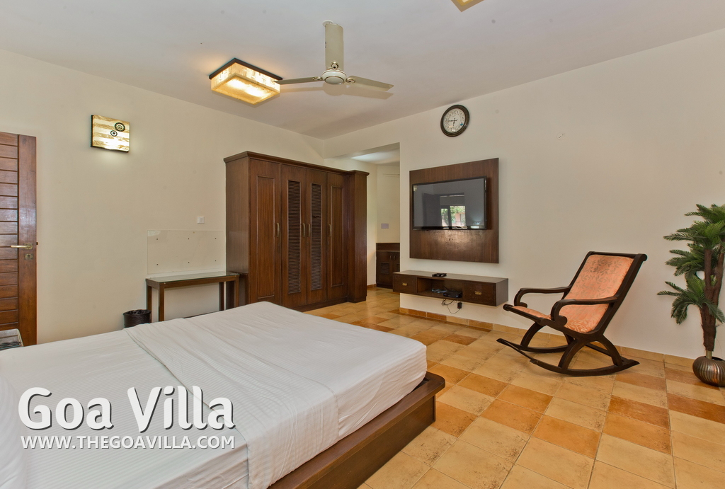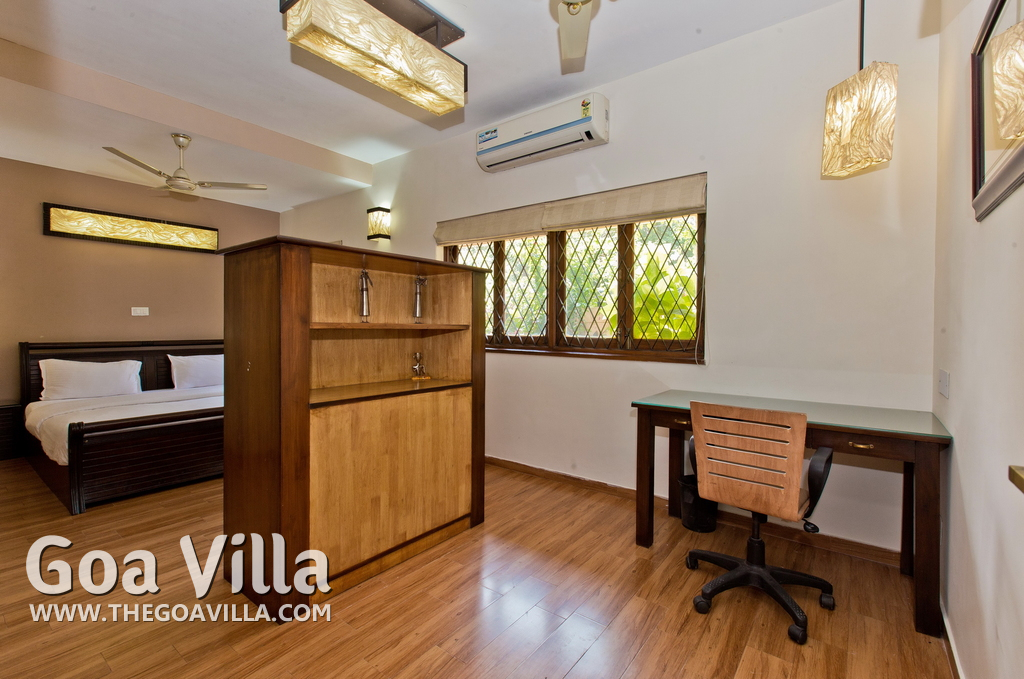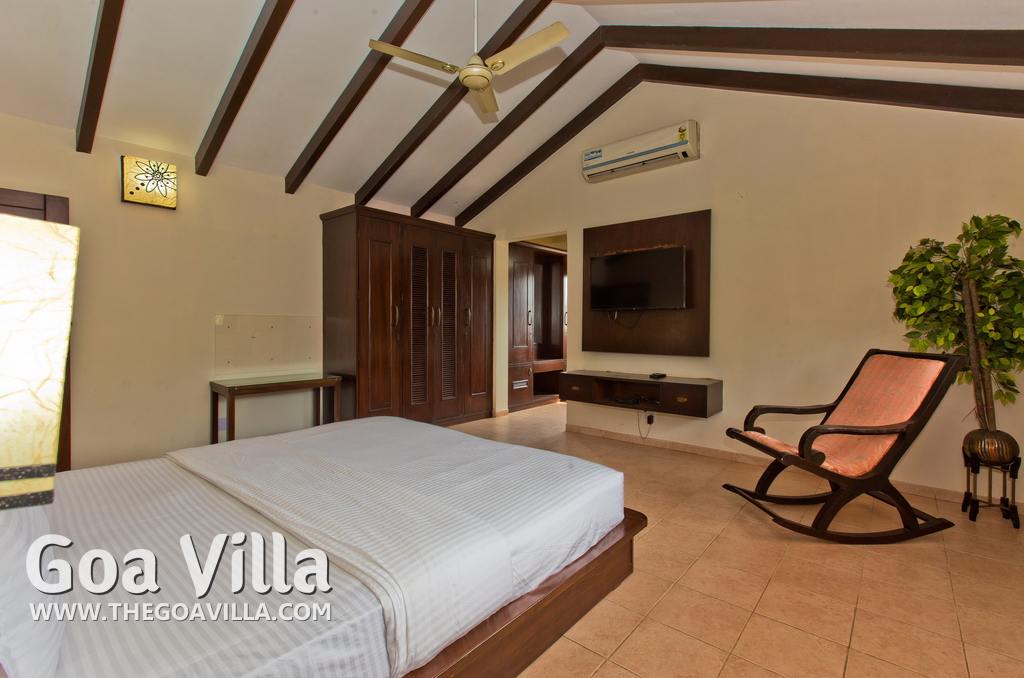 Bedrooms – The villa has 4 bedrooms, all en-suite and air-conditioned. Two of the bedrooms are on the ground floor, while the other two floors have one bedroom each. They all have large king beds, side tables, lamp shades, wardrobes, large flat-screen televisions, and study tables. Large windows bring in the sea breeze and sunlight. The master bedroom has an attached balcony with private sitting.