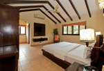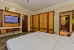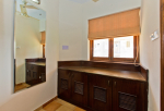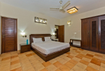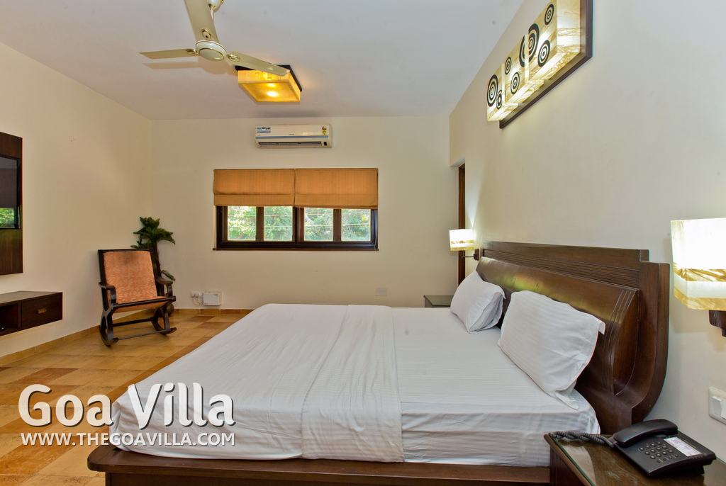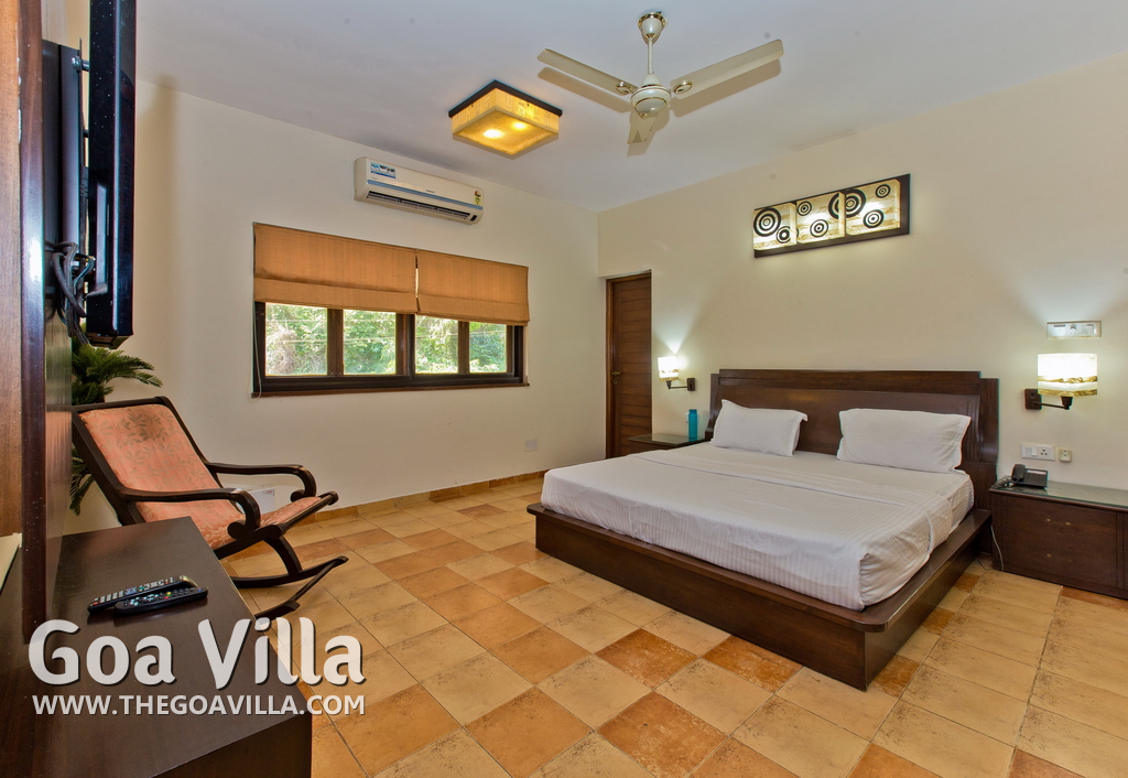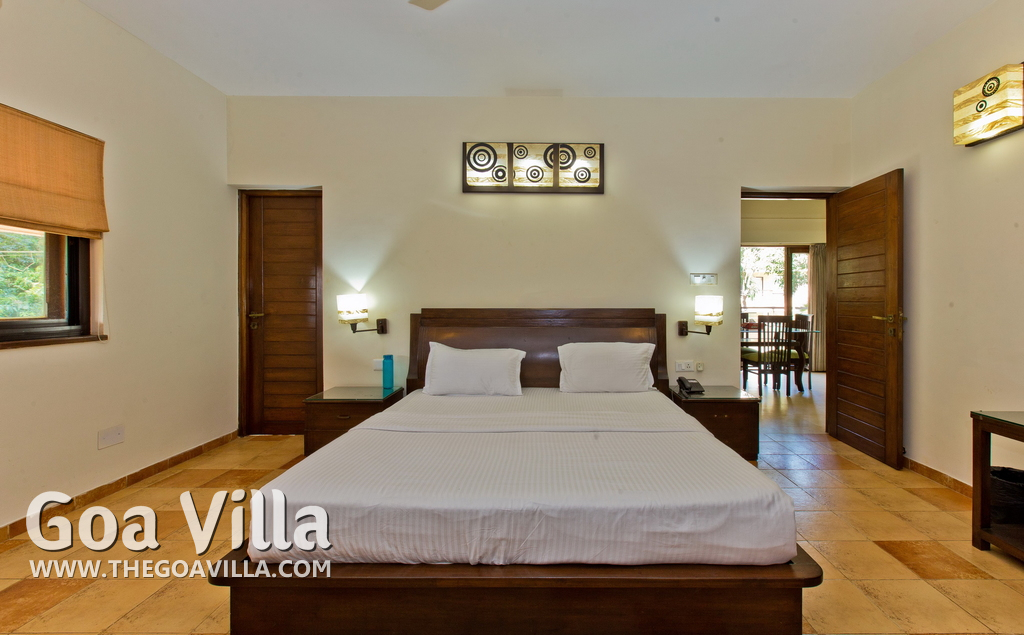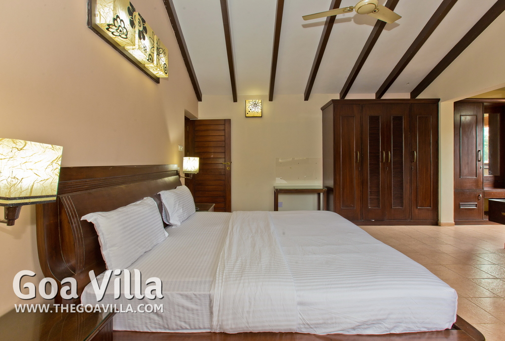 Bedrooms – The villa has 4 bedrooms, all en-suite and air-conditioned. Two of the bedrooms are on the ground floor, while the other two floors have one bedroom each. They all have large king beds, side tables, lamp shades, wardrobes, large flat-screen televisions, and study tables. Large windows bring in the sea breeze and sunlight. The master bedroom has an attached balcony with private sitting.