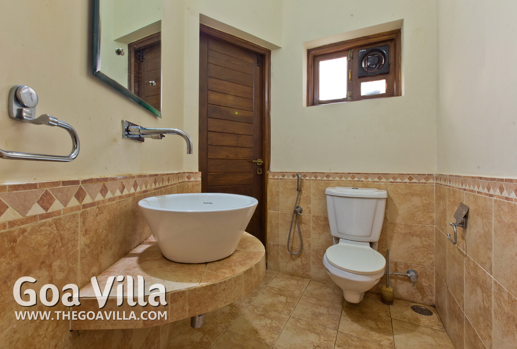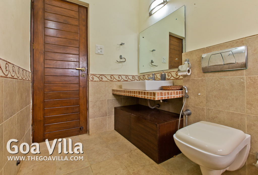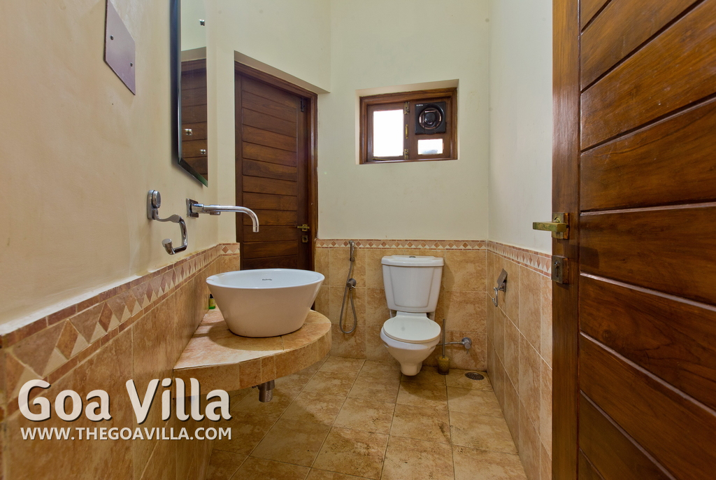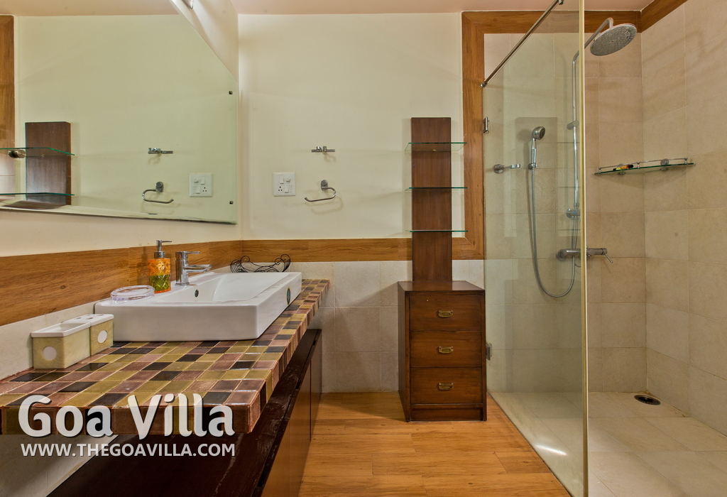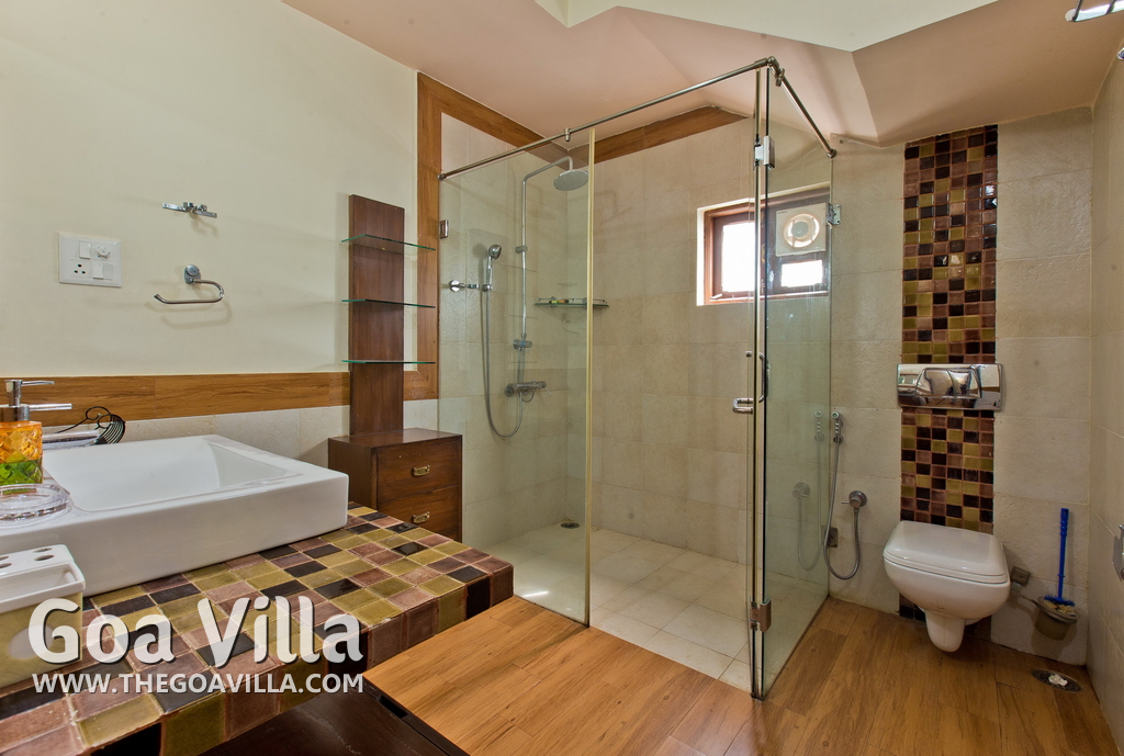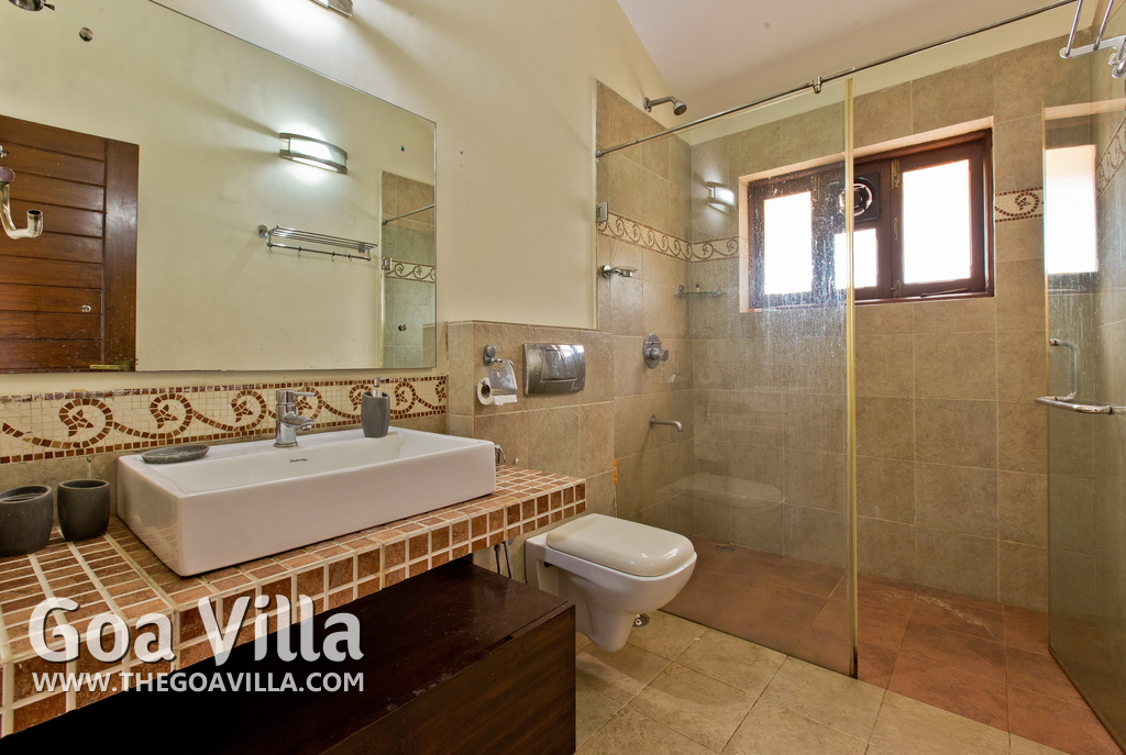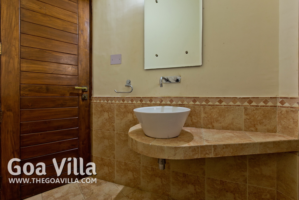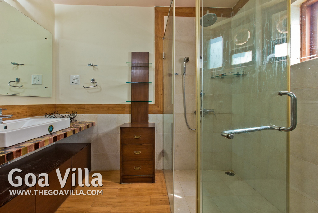 Bathrooms – There are a total of 6 washrooms in this property in North Goa. Four of them are with the bedrooms. They are contemporary washrooms with modern sinks, a large mirror, and shower cubicles. Toiletries are provided.