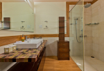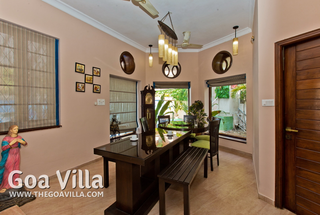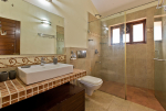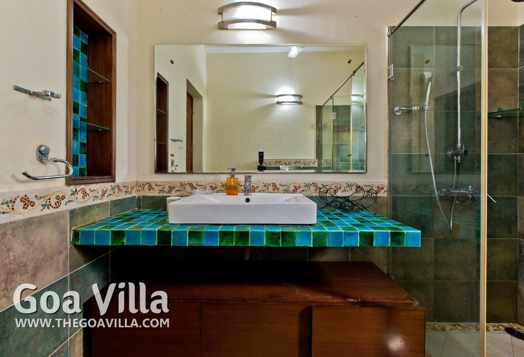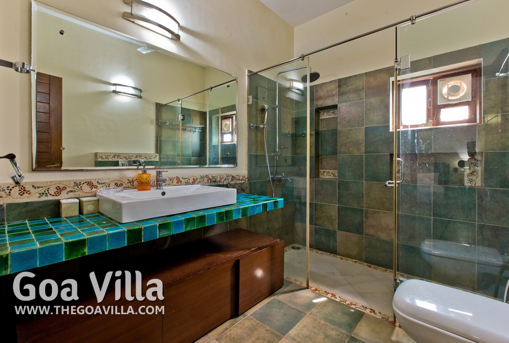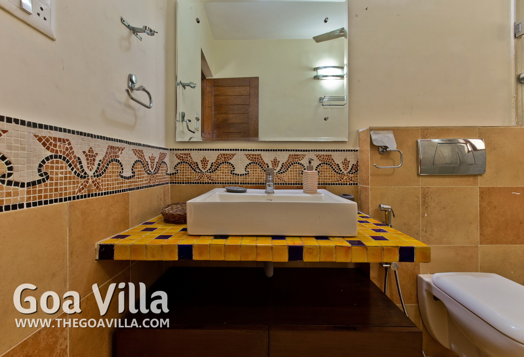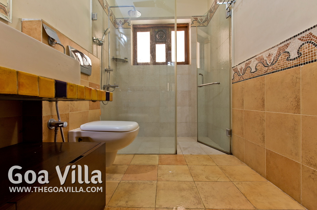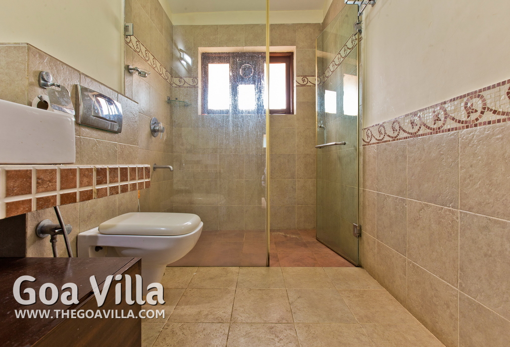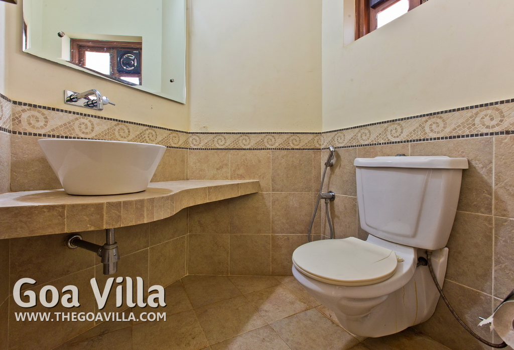 Bathrooms – There are a total of 6 washrooms in this property in North Goa. Four of them are with the bedrooms. They are contemporary washrooms with modern sinks, a large mirror, and shower cubicles. Toiletries are provided.
