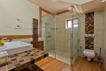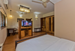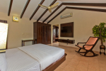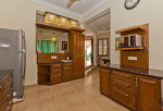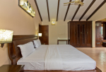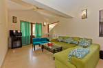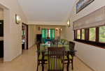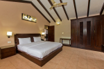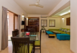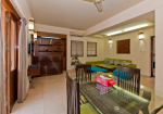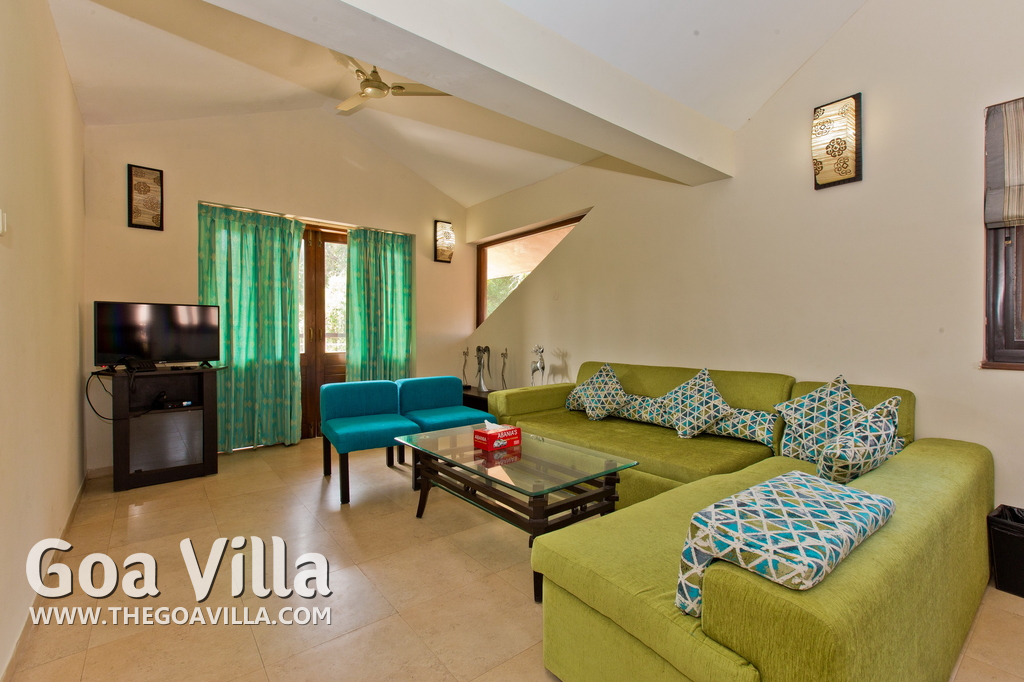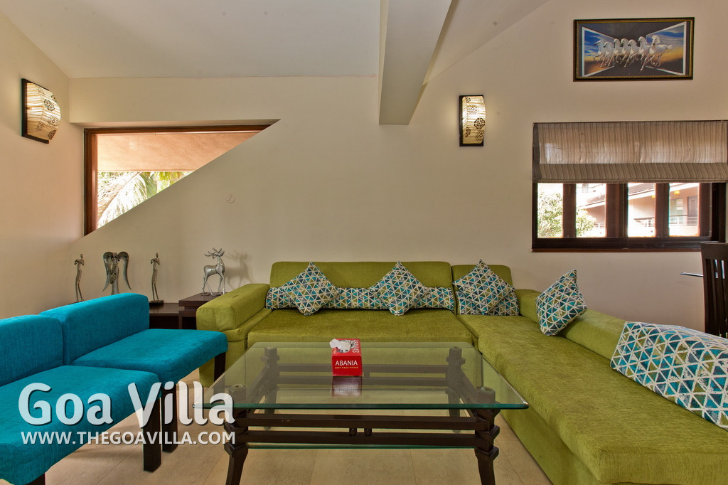 Living Room – There are two separate living areas – in the first and second floors. They are both very cozy. Large L-shaped deep-cushioned sofa keeps you comfortable. There are side and center tables. Paintings and objects of art decorate the space. There are two common bathrooms with the two living rooms.