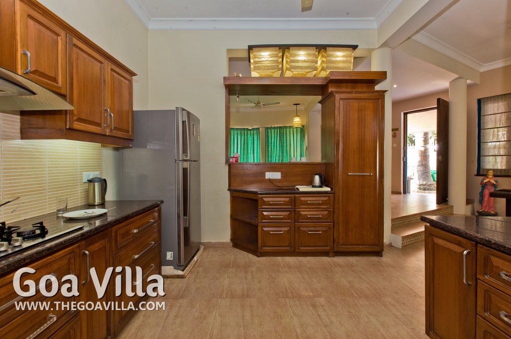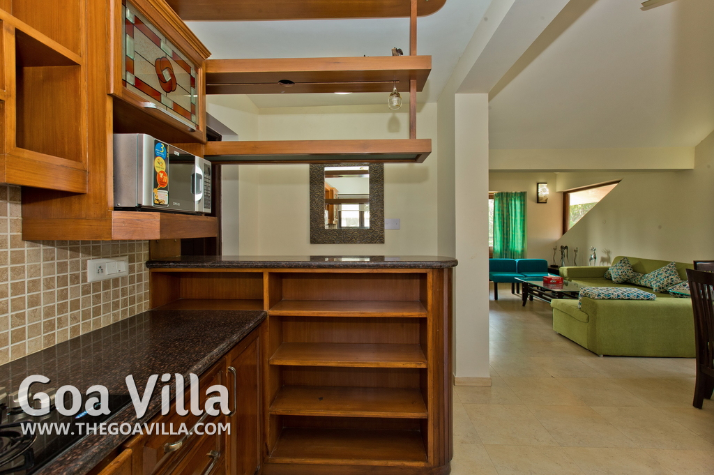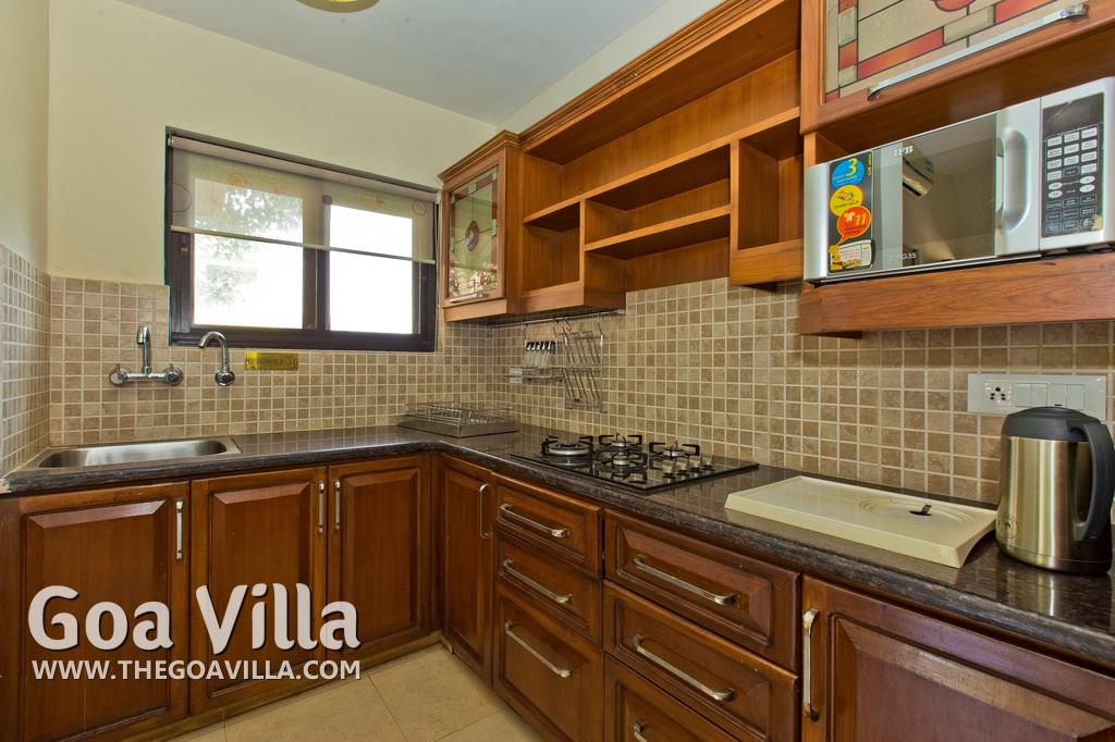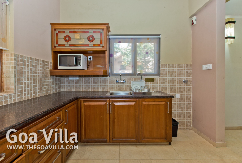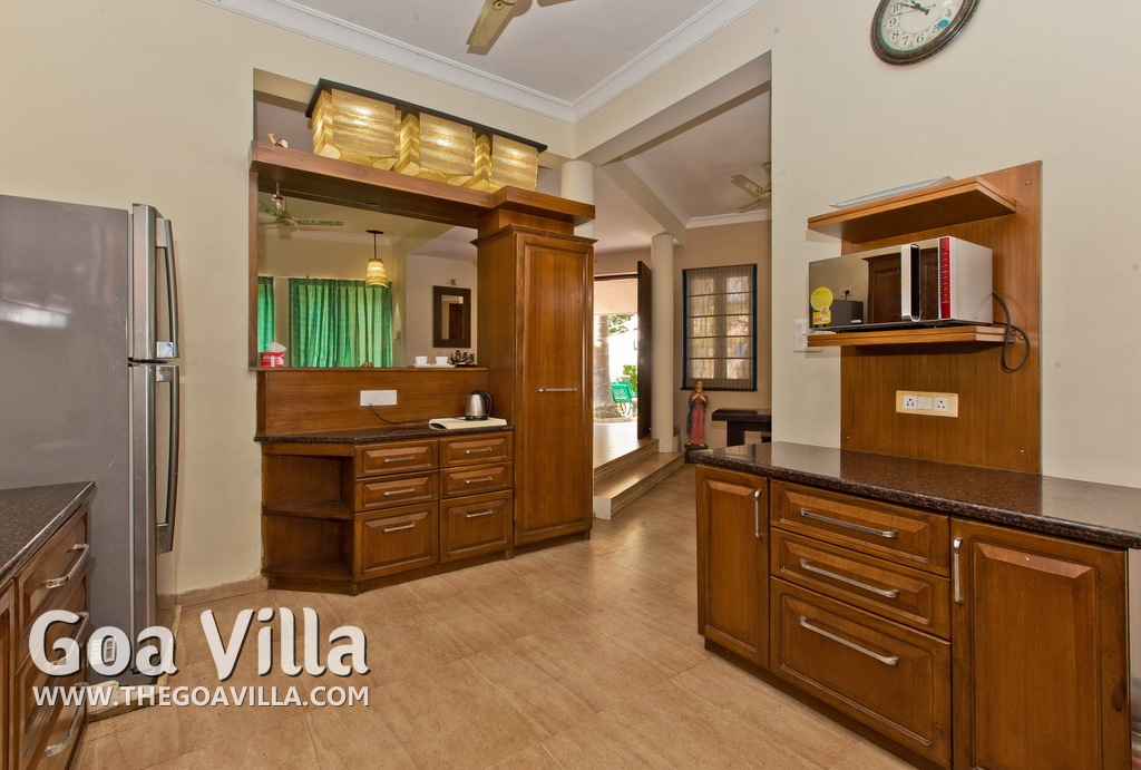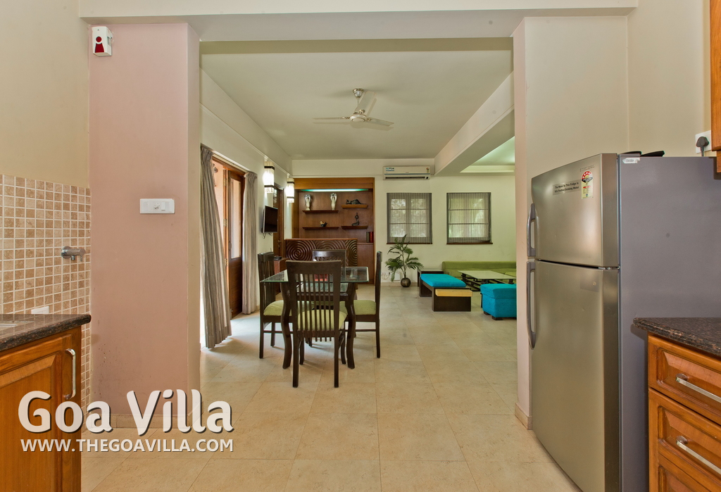 Dining, Kitchen – Villa Avalon has a well-equipped modular kitchen that the guests can use. It has a double-door refrigerator, stove, chimney, microwave, washing machine, and electric kettle. Tableware and glassware is provided. There are two separate dining tables just outside that provides sitting for the entire group.