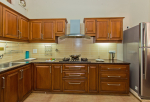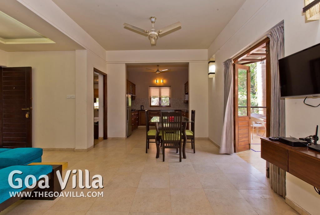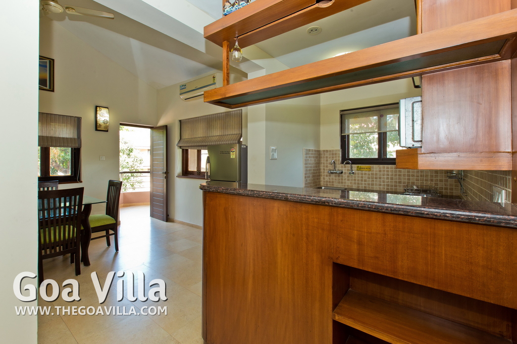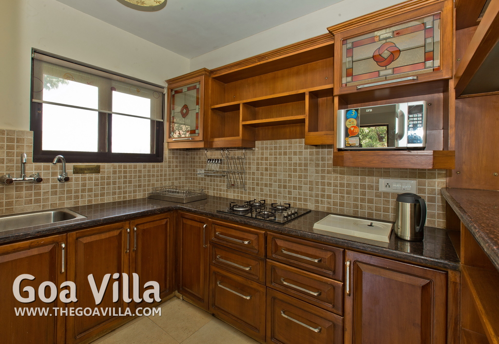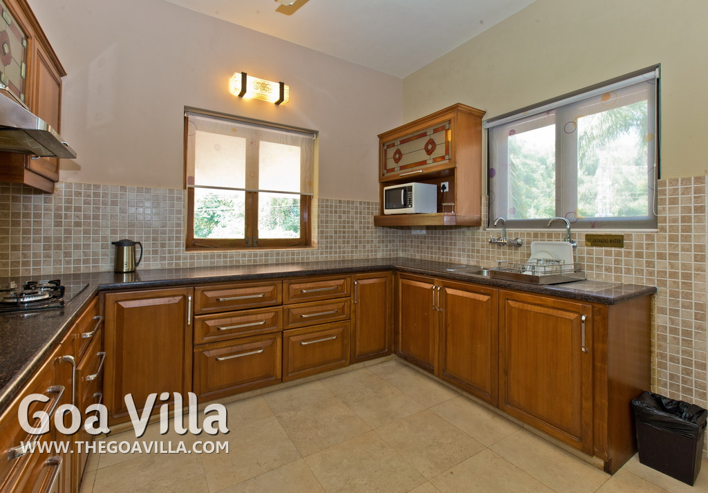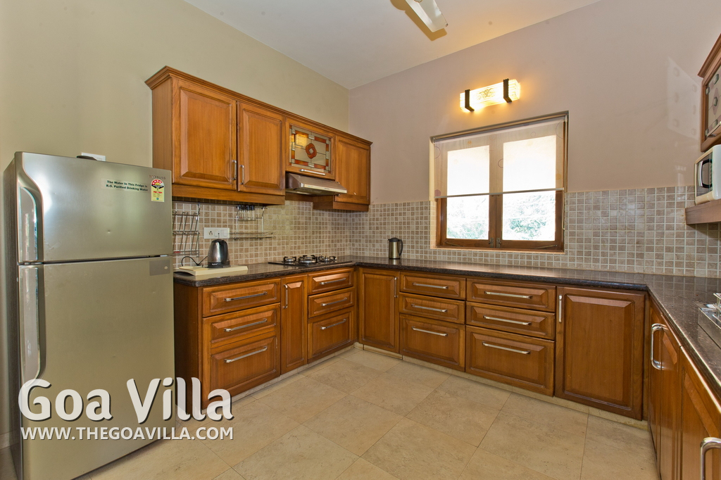Dining, Kitchen – Villa Avalon has a well-equipped modular kitchen that the guests can use. It has a double-door refrigerator, stove, chimney, microwave, washing machine, and electric kettle. Tableware and glassware is provided. There are two separate dining tables just outside that provides sitting for the entire group.