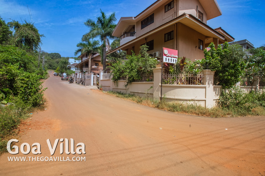 This holiday villa for rent is in Baga, which is one of the busiest neighborhoods of Goa. Together with Candolim and Calangute, it is a long stretch of about 7.5 kilometers. Here, you will find everything – beach shacks, water sports, restaurants, bars, cafes, nightclubs, and even two forts at the northern end. The immediate area around the villa is quiet. But shops, places to eat, and ATMs are all close.