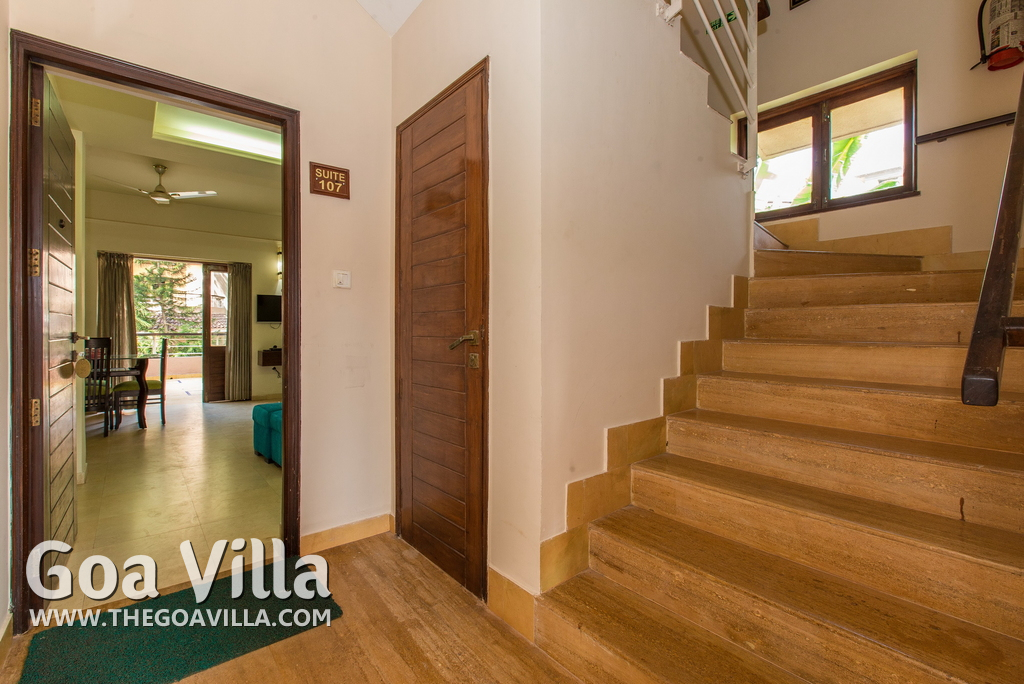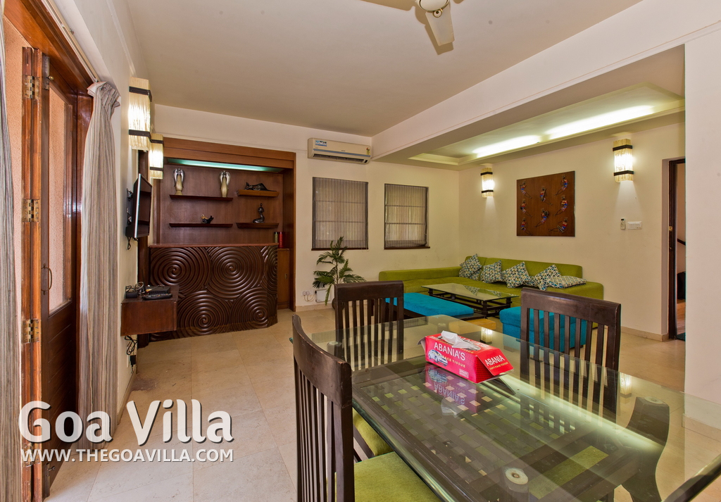 This property in North Goa is spread over 3 floors. Part of a residential community, this is a building with a modern façade and comfortable interiors. It is a good choice for up to 8 guests who want to stay in a quiet location, but close to an extremely popular beach in Goa.