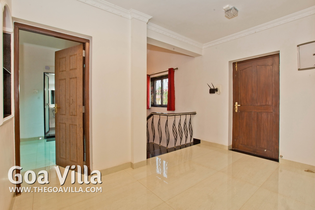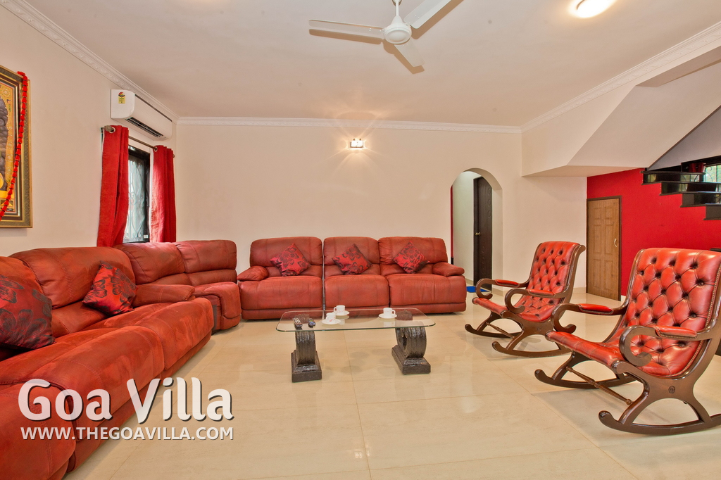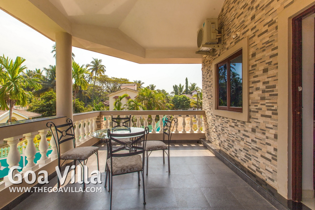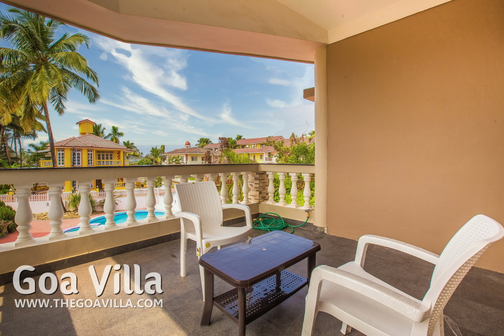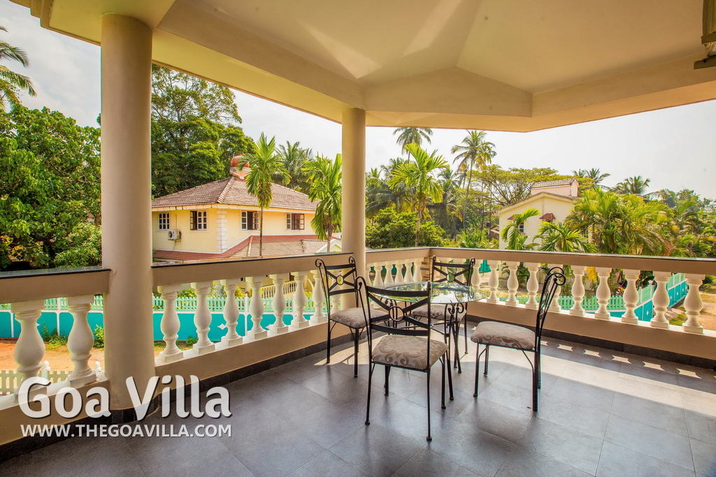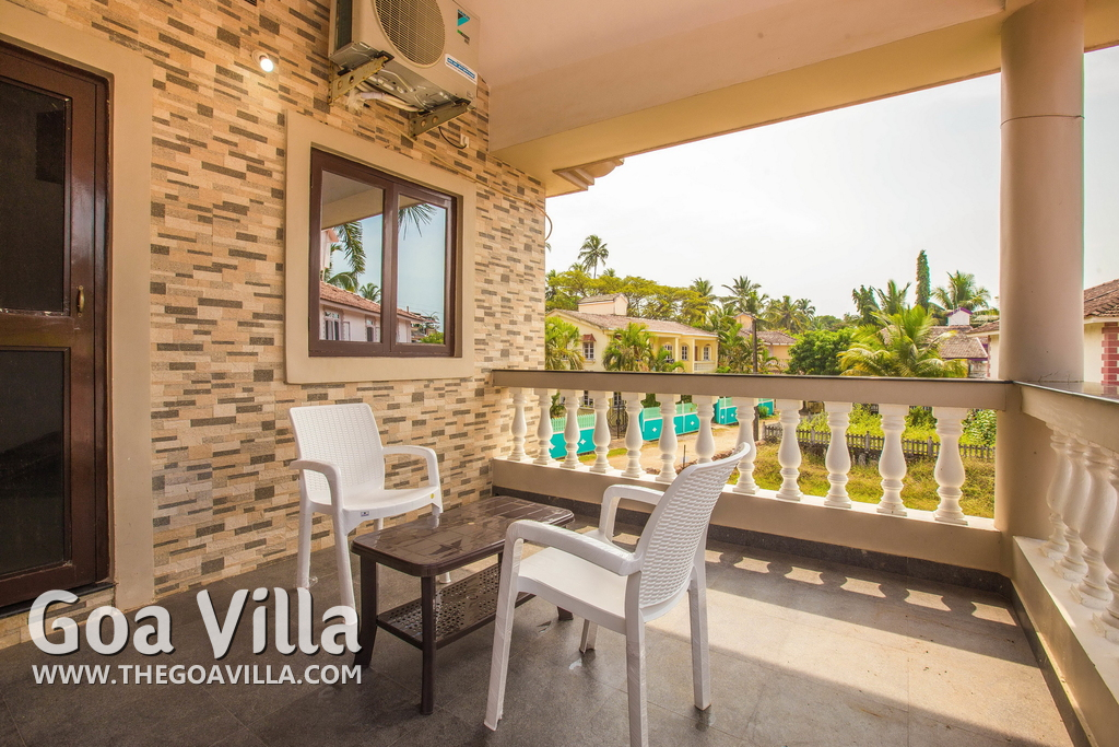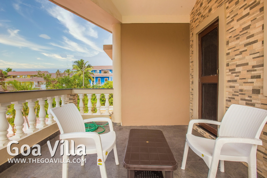 Bedrooms – Betalbatim Villa has 3 bedrooms, all on the 1st floor. The master bedroom is en-suite, but they are all air-conditioned. They have comfortable queen beds, side tables, a sitting area, television, and wardrobe. Large windows provide nature views. The master bedroom is larger in size. Two of the three bedrooms, including the master bedroom has a large private balcony with sitting. Sit here and enjoy the lush greenery. You will see tall trees as far as the eye goes.