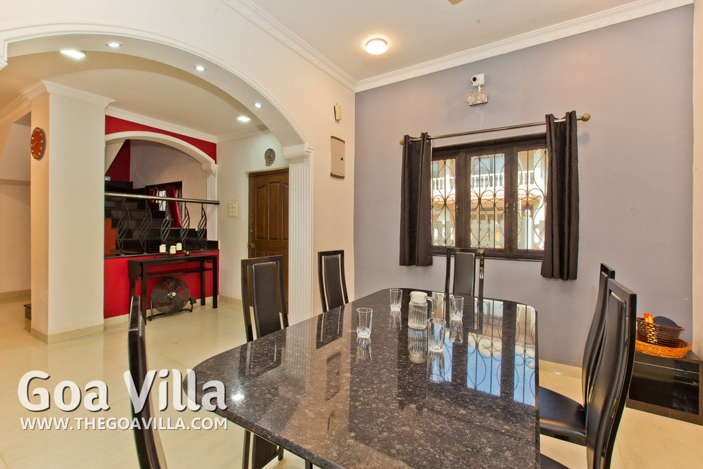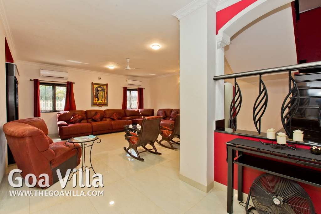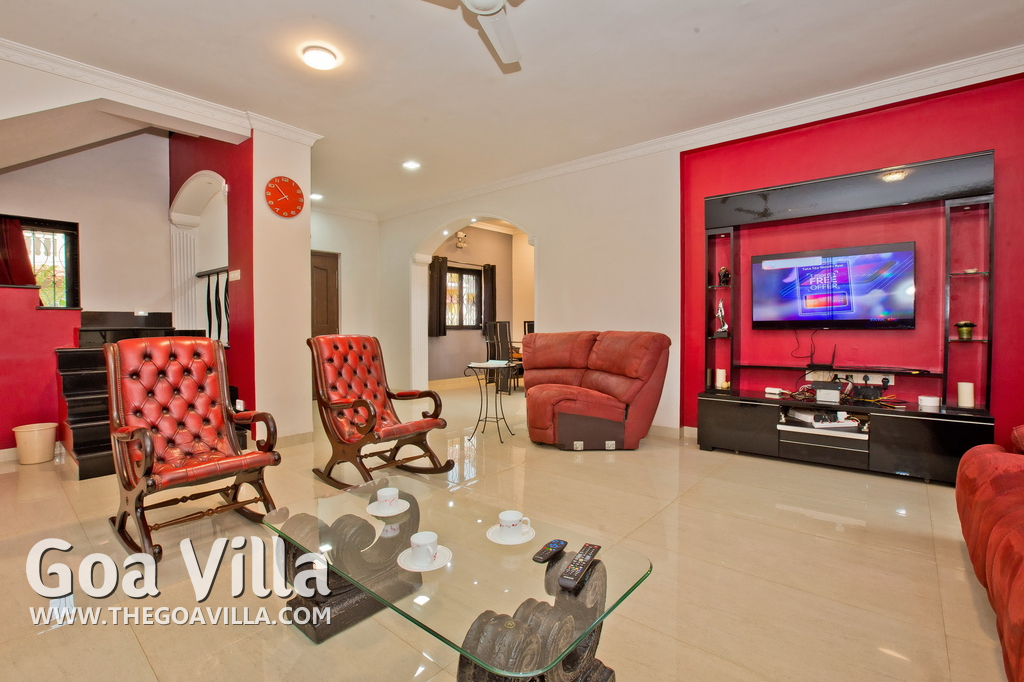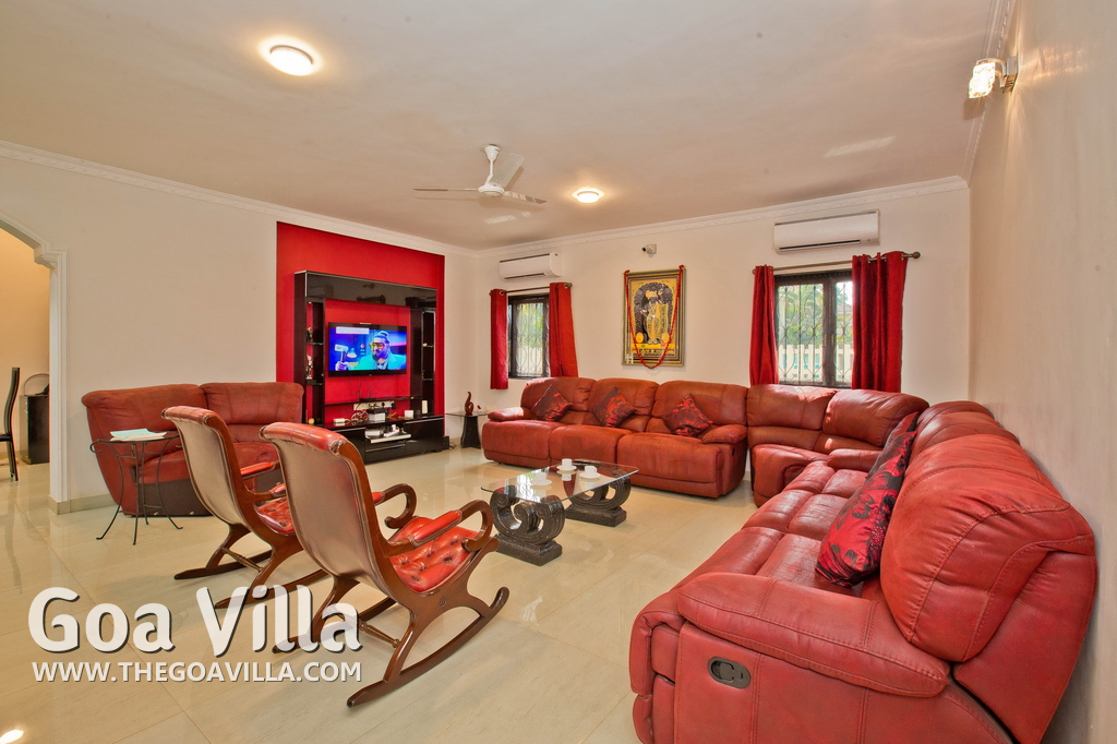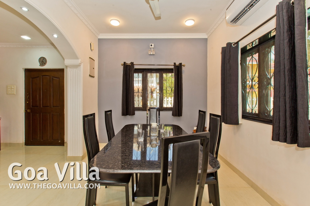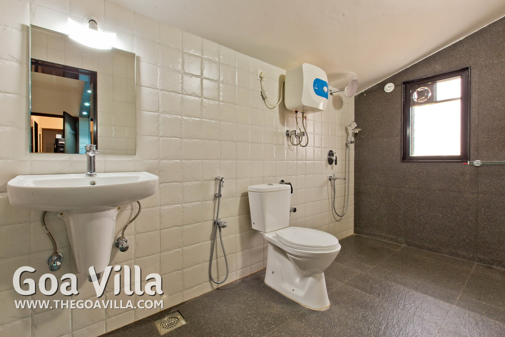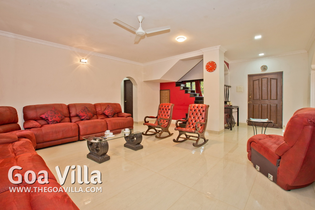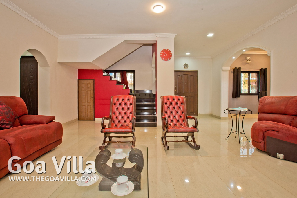 Bedrooms – Betalbatim Villa has 3 bedrooms, all on the 1st floor. The master bedroom is en-suite, but they are all air-conditioned. They have comfortable queen beds, side tables, a sitting area, television, and wardrobe. Large windows provide nature views. The master bedroom is larger in size. Two of the three bedrooms, including the master bedroom has a large private balcony with sitting. Sit here and enjoy the lush greenery. You will see tall trees as far as the eye goes.