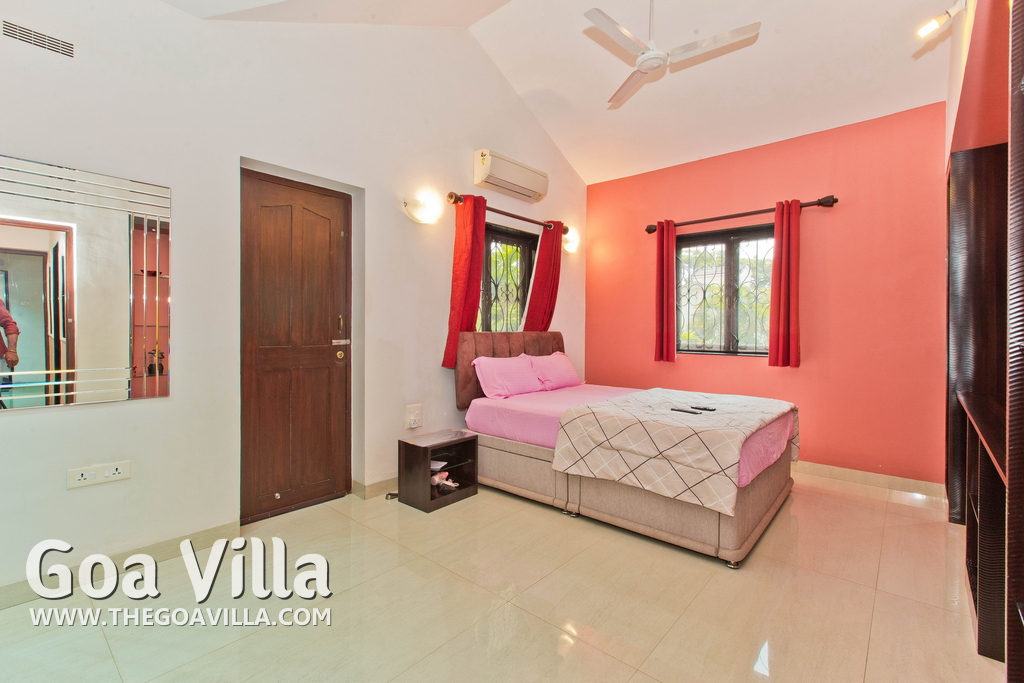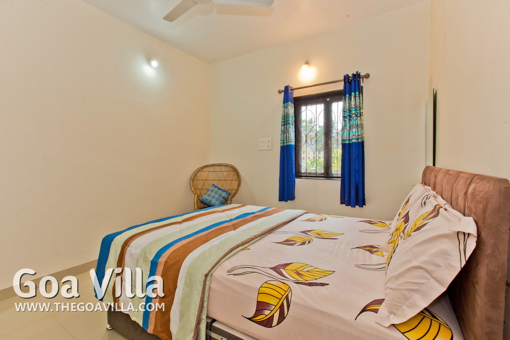 Betalbatim Villa is a wonderful 3-bedroom private property for rent at Betalbatim in South Goa. Only 500 meters from the beach, this is a modern villa with comfortable interiors. There is a private swimming pool, living room, and a fully equipped kitchen for guests who want to prepare their own meals. The bedrooms have simplistic décor and comfortable furnishings. Large and airy – more spacious than the average rooms you will find at hotels. It is a good villa for guests who want a private and serene vacation, close to a major South Goa beach.