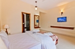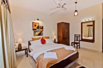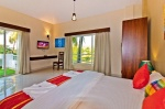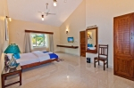 - Ground floor as well hosts two bedrooms. One large bedroom with king size bed, wardrobe, working station and TV unit is also overlooking paddy fields. The second bedroom is smaller and has same facilities but the bed is of queen size.