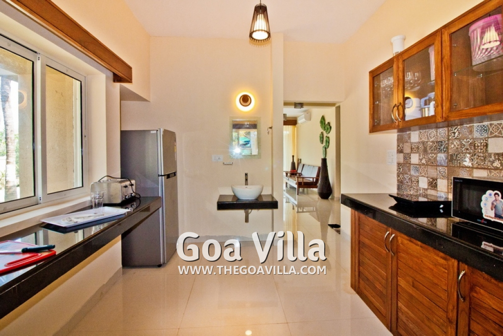 - Walk into the villa straight into an air conditioned living room and dining area opening a great view of greenery. Fully equipped kitchen with all utensils and necessary crockery to serve up to 15 guests will help to make each feel at home and a necessity for a family with kids or elderly.