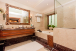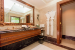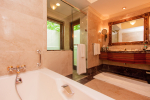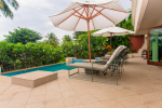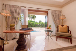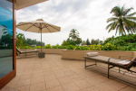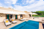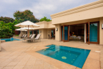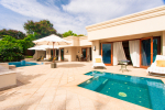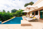 Single storey 3-bedroom villa, aesthetically modern with beautifully designed rooms and living area. On one side of the large living room you have direct access to a wide terrace with two swimming pools, and on the other there is veranda with views of the surrounding tropical greenery.