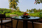 Cinema Villa is located within lush greenery, only 300 meters from the beach. The winding Sal River meets the sea on the other side. It is within a landscaped garden with lawns and tall trees. There is plenty of greenery everywhere. There are only upscale luxury resorts and a few villas in the neighborhood. You will find a few restaurants, ayurvedic clinics, and shops in the area. There is water sport in the beach, and river cruises on the Sal River.