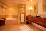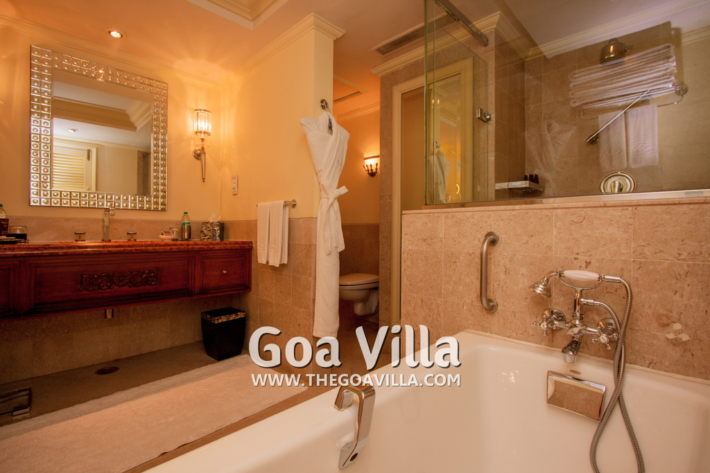 Bathrooms – Huge bathrooms with modern faucets, sink, bathtub, shower cubicle, large mirror, telephone, and towel rack. Toiletries are provided.