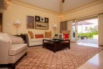 Cinema Villa has 2 en-suite bedrooms, a separate living and dining area, and a private swimming pool set within a landscaped garden with tall trees and lawns.