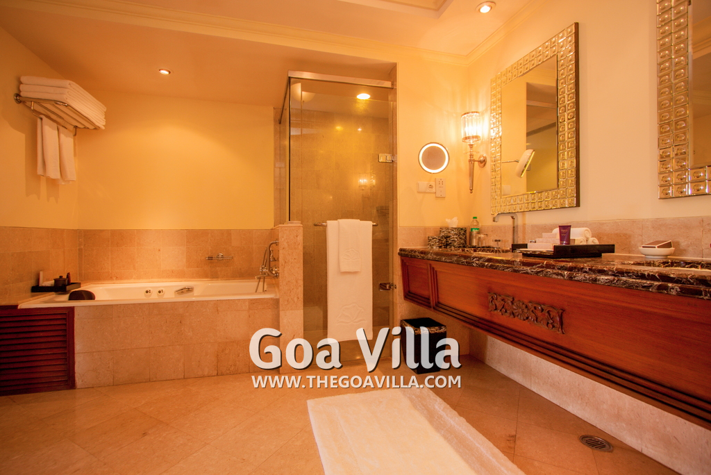 Bedrooms – The luxury villa has 2 en-suite and air-conditioned bedrooms. Big sized bedrooms with large comfortable bed, extra cushions, side table, table lamp, carpet, separate sitting area, study table, color television, and paintings on the wall. All bedrooms have luxury furnishings and decorations. High ceiling keeps the room cool even in peak summer. Balcony overlooking greenery. There is separate sitting arrangement in the balcony as well.