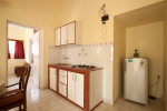 - The kitchen has a refrigerator, gas stove and set the necessary utensils.