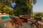 The large open living area gives you picturesque views of the veranda and tropical gardens. The swimming pool with its infinity design gives you a magnificent view of the river valley. Adjoining the living room is a large open kitchen with an equally large dining area.