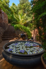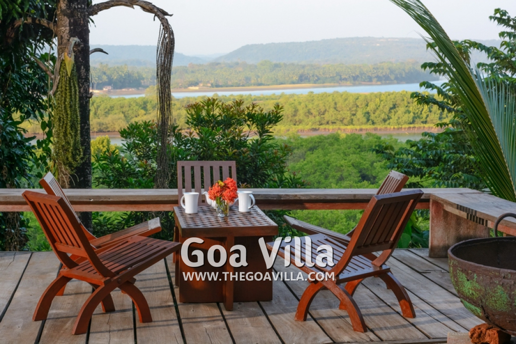 Our exclusive Dream River Villa near Arambol is a luxury villa in lush green gardens and overlooking the river valley. With its breathtaking view of the far-reaching valley it is situated on an exclusive property with a design by the owners themselves, with selected antique furniture and fine interior details.