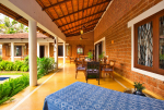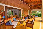 Family Villa is a small rustic home for stay at Arpora in North Goa. The villa has 3 bedrooms, all en-suite and air-conditioned. It has a Portuguese colonial façade, and antique wrought iron and wooden furniture. Private swimming pool with sun loungers on a landscaped garden. Pergola on the edge of the garden. The villa also has a cozy and comfortable living room and a fully equipped kitchen.