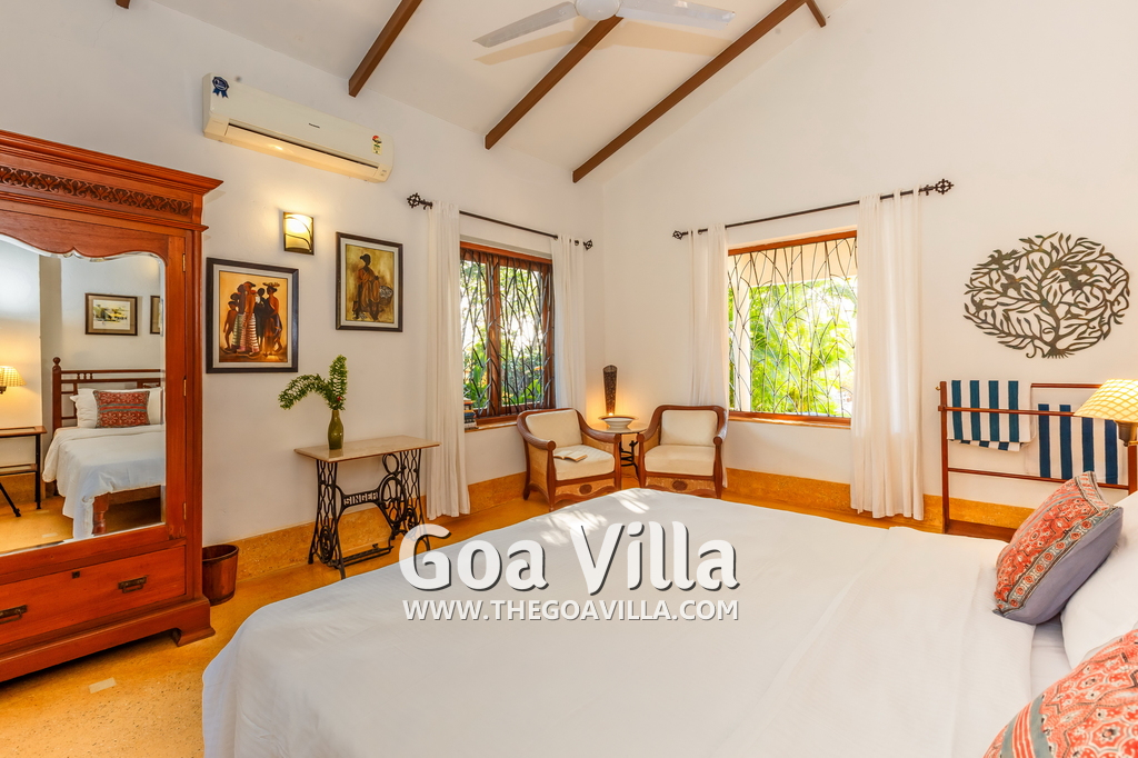 The villa is located in a green and quiet neighborhood offering complete peace and privacy. Village ambiance with lots of greenery all around. Its rustic charm and modern amenities promise a comfortable stay. It is just 3 kilometers from Baga beach, 8 kilometers from Anjuna, and 9 kilometers from the popular Vagator beach. The Arpora Night Market is only 650 meters away.