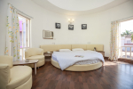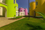 Gautam Hotel has an independent villa in a hotel complex with its interesting and precarious architecture and different bright colors. The furniture fits perfectly to its rounded forms. Each of the 10 villas has its own small swimming pool in a fenced backyard and can accommodate up to 5 people. The place attracts lovers for a leisurely pastime away from the bustle and crowded resorts.