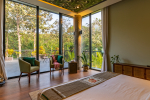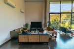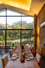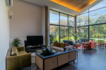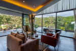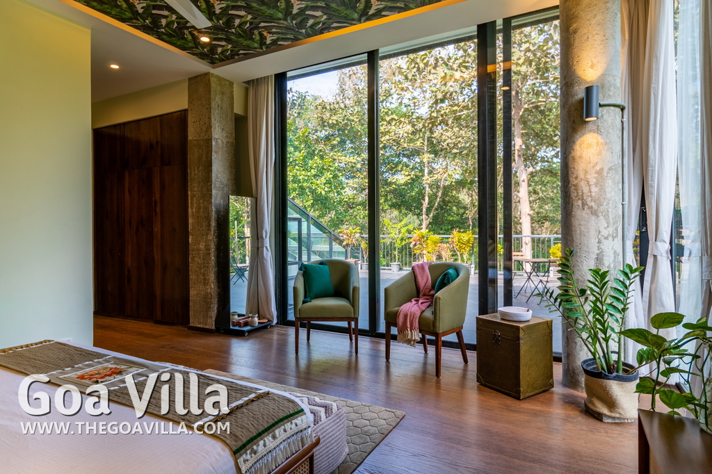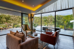 The very definition of "stop and stare"-The Glass House — a villa enclosed by glass, where you can soak in unobstructed and seamless views of your surroundings and revel in their beauty. Lush greenery, blue skies — it sounds perfect, because it is. No curtains, no blinders, just you and nature. The property is built on two levels interconnected by a spiral staircase. Each level has its own private balcony with a cosy sit out and private bathrooms.