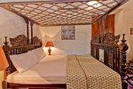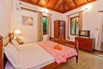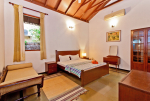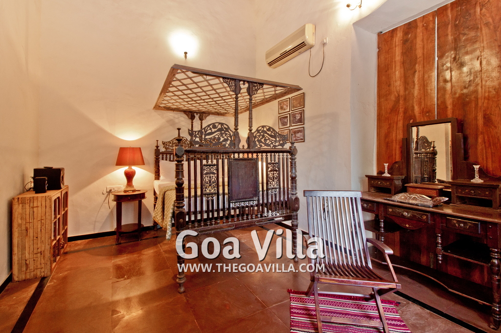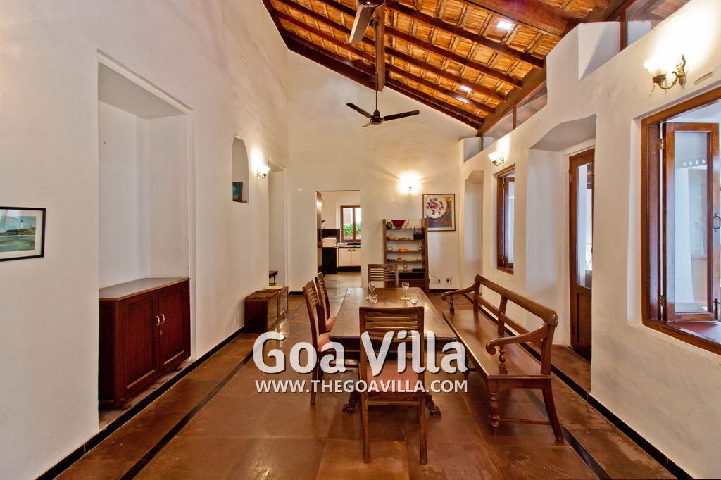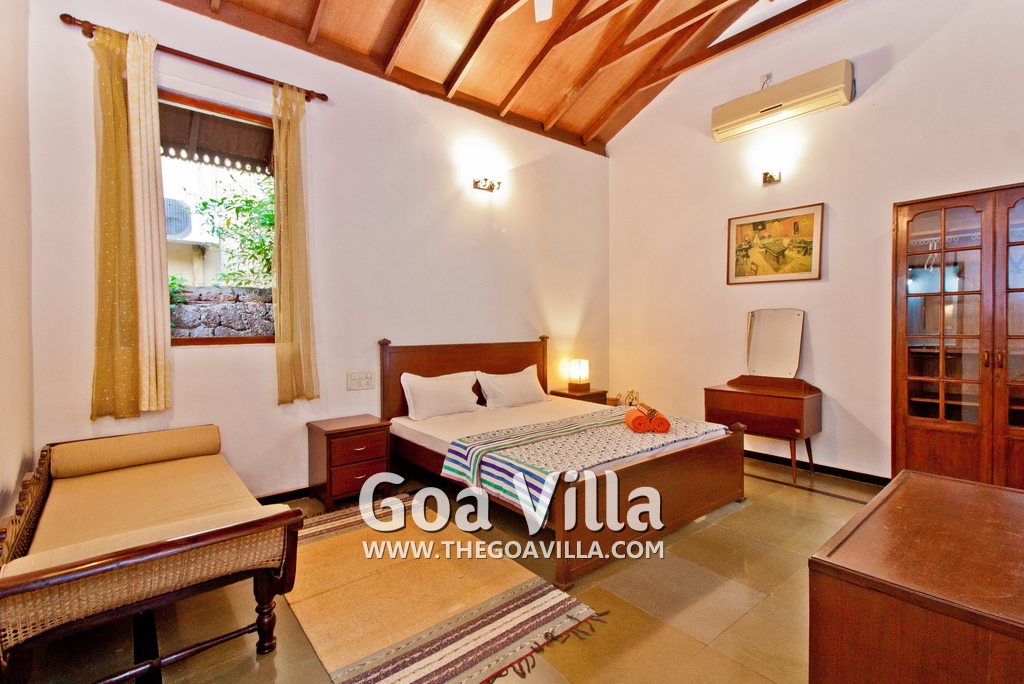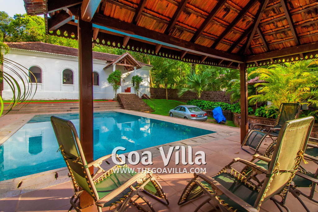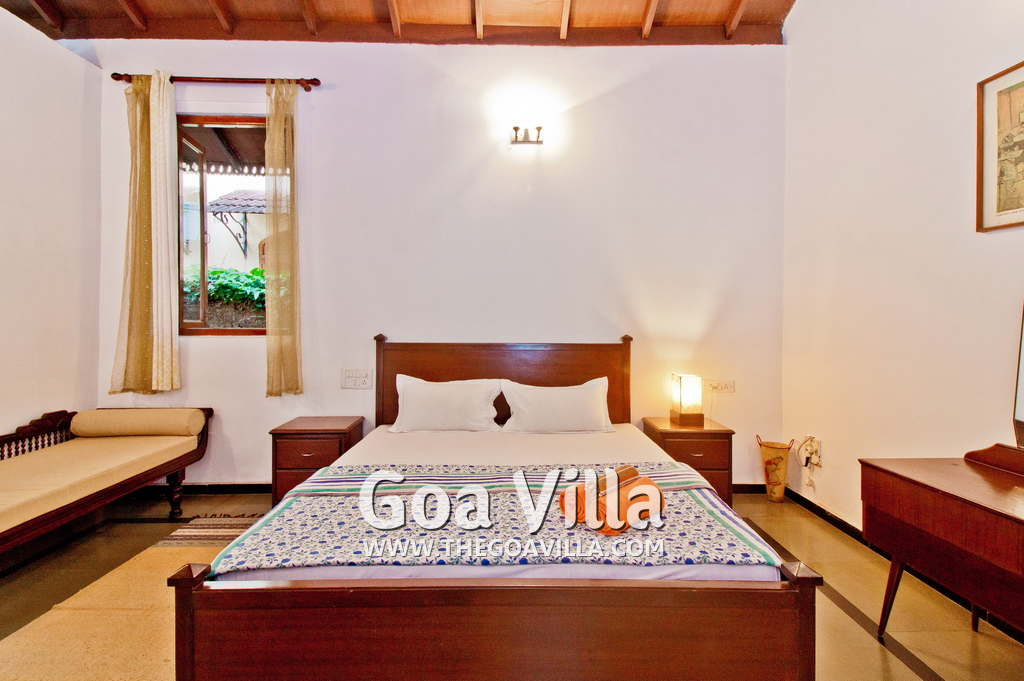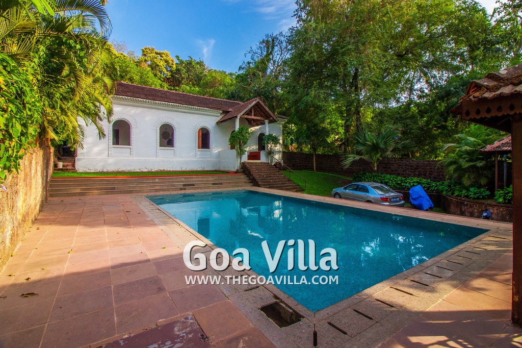 Hima is a 5-bedroom villa for rent at Verem in North Goa. On a small hill, it is 1.5 kilometers from the Quedevelim beach and 4.5 kilometers from Candolim. Portuguese influenced architecture. Air-conditioned bedrooms with antique and modern furniture. 4 of the 5 bedrooms are en-suite. Garden, swimming pool, kitchen, living room. Luxury services.