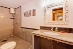 Bedrooms – All bedrooms are air-conditioned. 4 bedrooms are en suite. 3 bedrooms have flat-screen TV. Modern wooden furniture, queen bed, wardrobe, side table, dressing table, carpet, sitting area, very good ventilation. One bedroom has antique furniture.