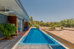 Kingfisher Villa has 4 bedrooms, all en-suite and air-conditioned. Single storied. Bedrooms lead to the private swimming pool. Plush interiors and modern bathrooms. Fully equipped kitchen. Greenery all around.