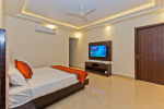 This modern, plush property is located at the end of a narrow lane with tall trees and lush greenery all around. Sophisticated residential colony. Just beyond the trees there are open fields and agriculture lands. You will have calm, peace, and complete privacy here. The beach is only 5 minutes away by car or motorcycle.
