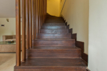 Living Room – The ground floor living room is also air-conditioned. It is very comfortable and cozy with colorful deep-cushioned sofas and a coffee table. Large flat-screen satellite television on the wall. Spiral staircase leads to the first floor from one side. Ceiling-to-floor glass sliding door opens to the swimming pool outside. There is a small lounge on the first floor as well with sitting and a television.