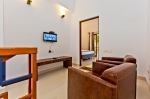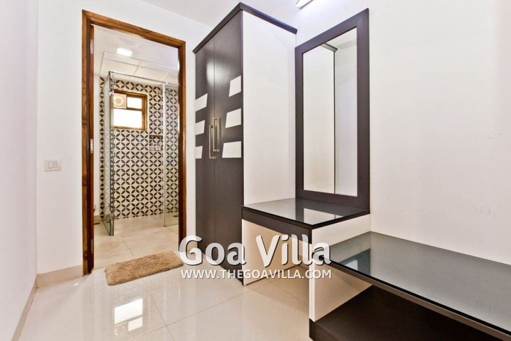 - Top floor hosts master bedroom with attached bathroom, large dressing area and small lounge area with TV.
