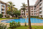 A luxury apartment in the heart of North Goa at Candolim! This is a 2-bedroom apartment in a gated community with a large swimming pool, waterfall at one end, manicured landscaped garden, paved pathways, garden lighting, 24/7 security, parking space, and other high-end facilities and amenities. The bedrooms are both en-suite. There is a fully-equipped kitchen and a cozy and comfortable living room.